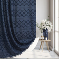 Siiluminisoy Extra Long Boho Farmhouse Shower Curtain Woven Fabric Navy Blue 84 Inch Shower Curtain, 72 X 84 Tufted Chevron Text