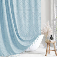 Siiluminisoy Extra Long Fog Blue Boho Shower Curtain Woven Fabric 84 Inch Shower Curtain, 72 X 84 Tufted Chevron Textured Stripe