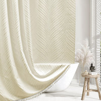 Siiluminisoy Extra Long Olive Green Boho Shower Curtain Woven Fabric Cute 84 Inch Shower Curtain, 72 X 84 Tufted Leaves Textured