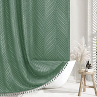 Siiluminisoy Sage Green Boho Shower Curtain Woven Fabric Cute Shower Curtain, 72 X 72 Tufted Leaves Textured Striped Modern Farm