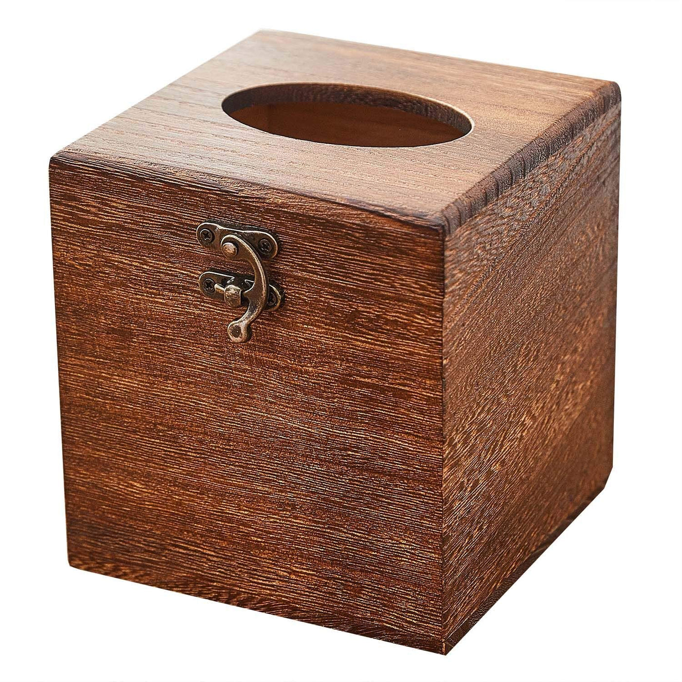 Sinobest Wood Tissue Box Cover Decorative Square Facial Tissue Holder Napkin For Bathroom And Home Decoration