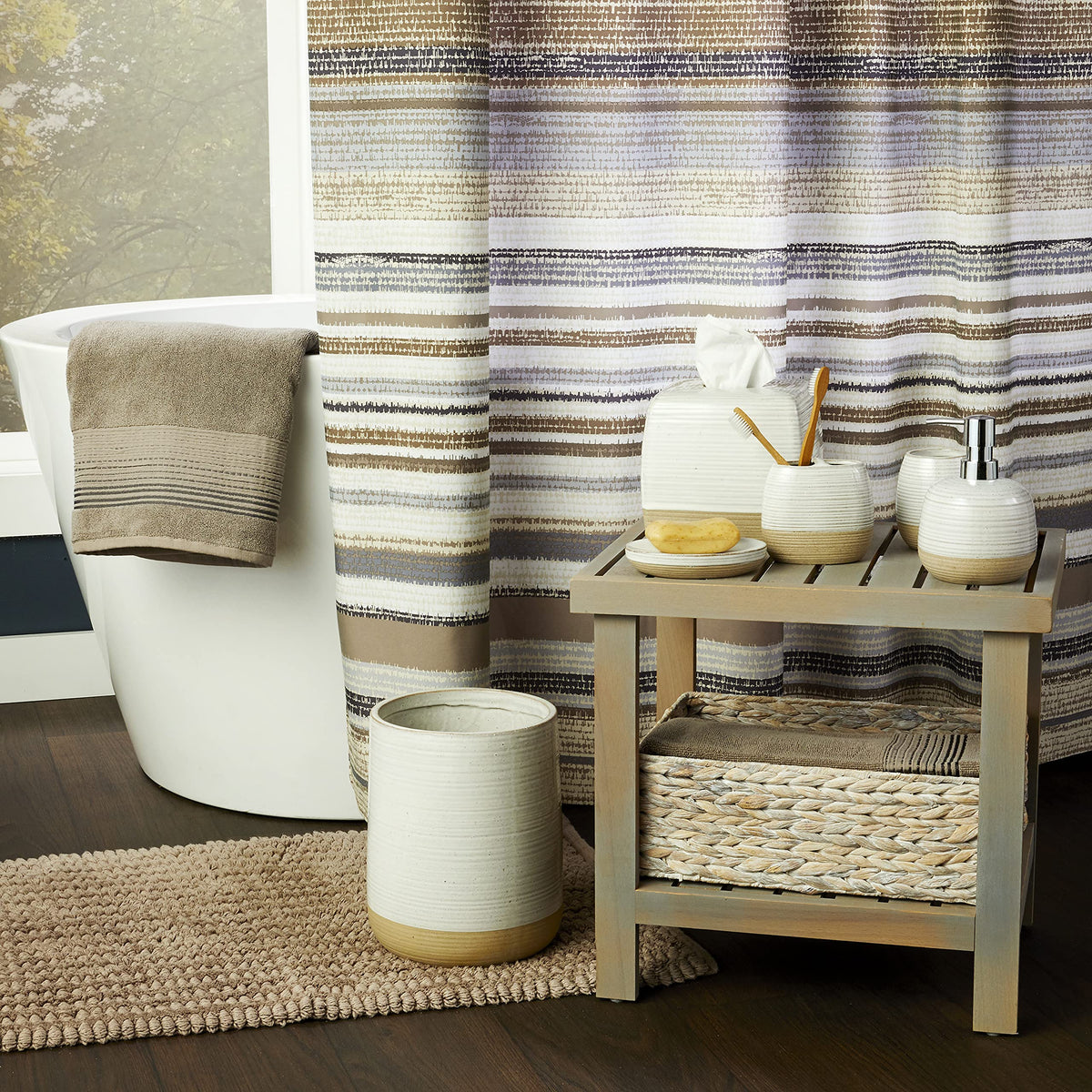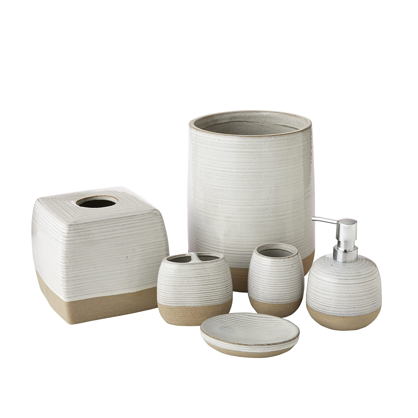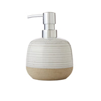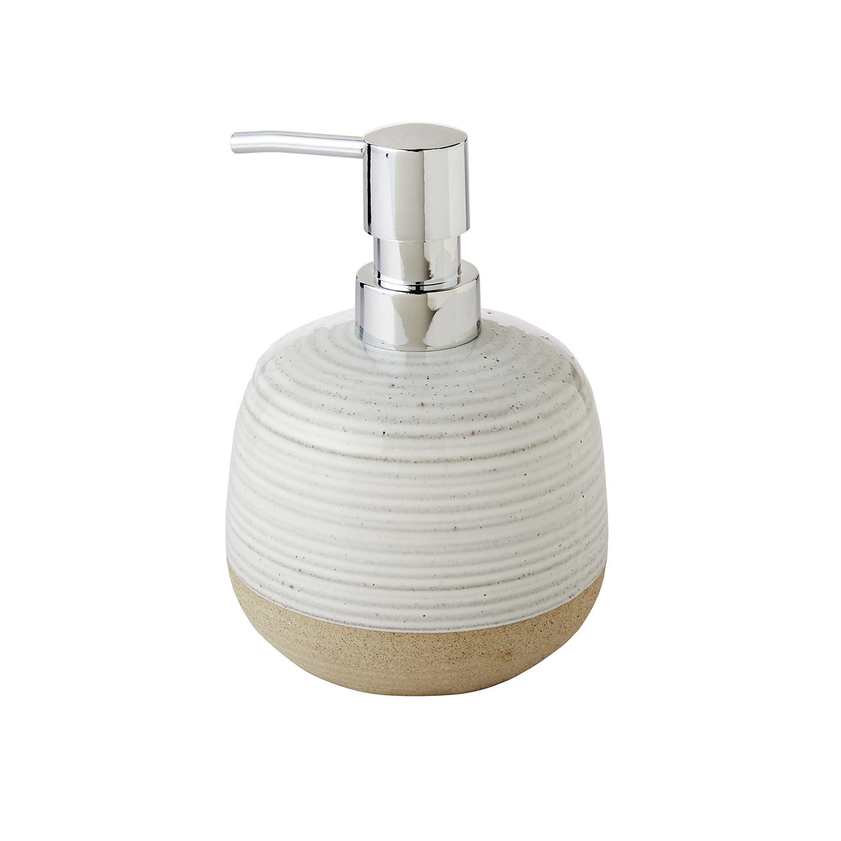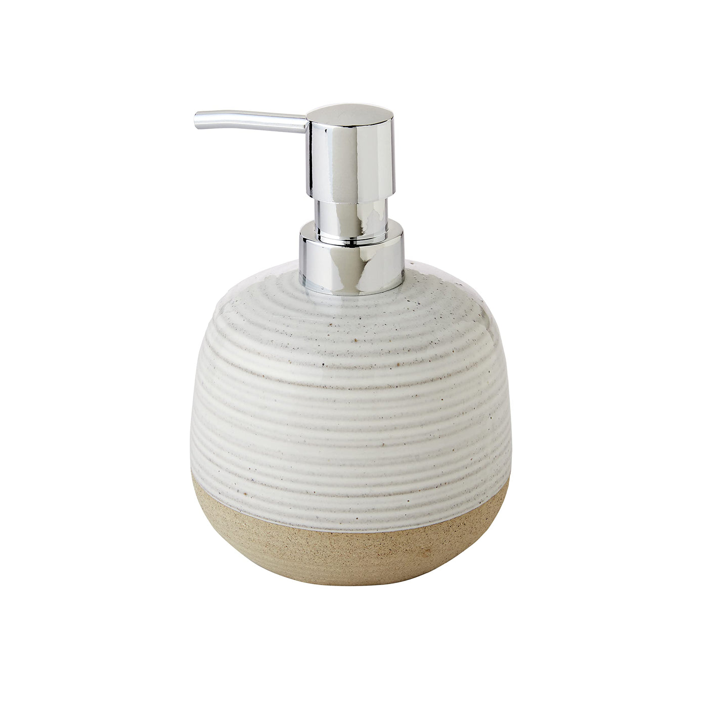 Take Neutral Up A Notch With The Chadwick Stipe Collection. A Neutral Color Scheme And A Slightly Ornate Striped Pattern Provide Versatility To Blend Well With Most Styles Of D Cor. The Lotion Pump Is Made Of Ribbed Ceramic With A Contrasting Band Along The Base And A Clear Glazed Finish. It Features A Shiny, Chrome-Like Pump And Can Hold Lotion Or Liquid Soap. Shop The Coordinating Chadwick Stripe Collection To Complete The Look.