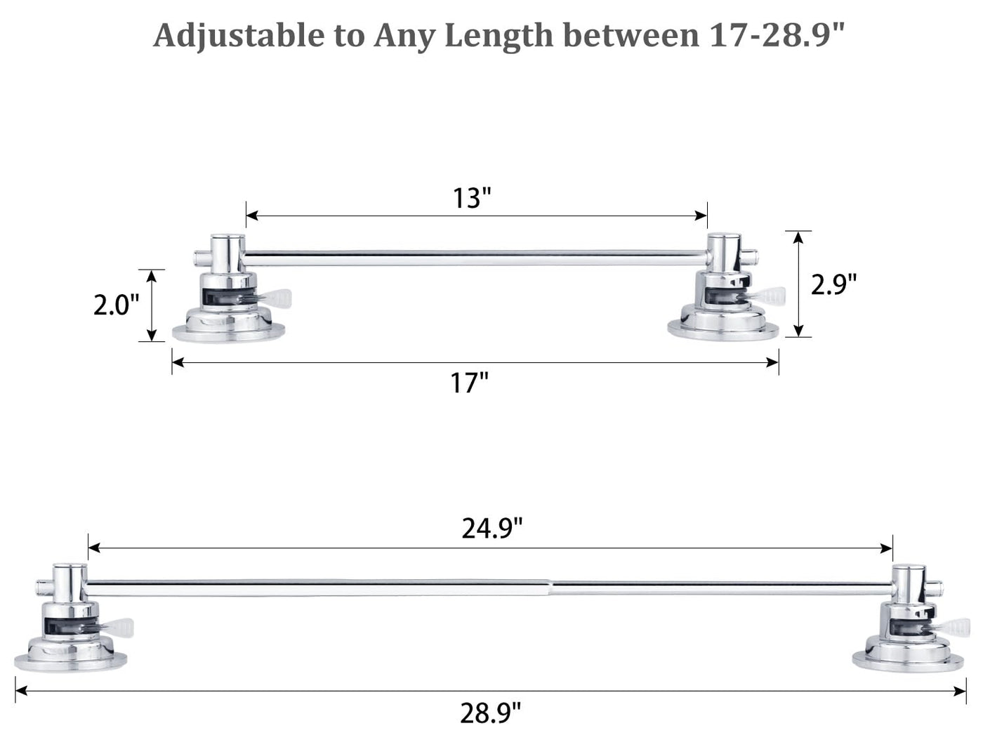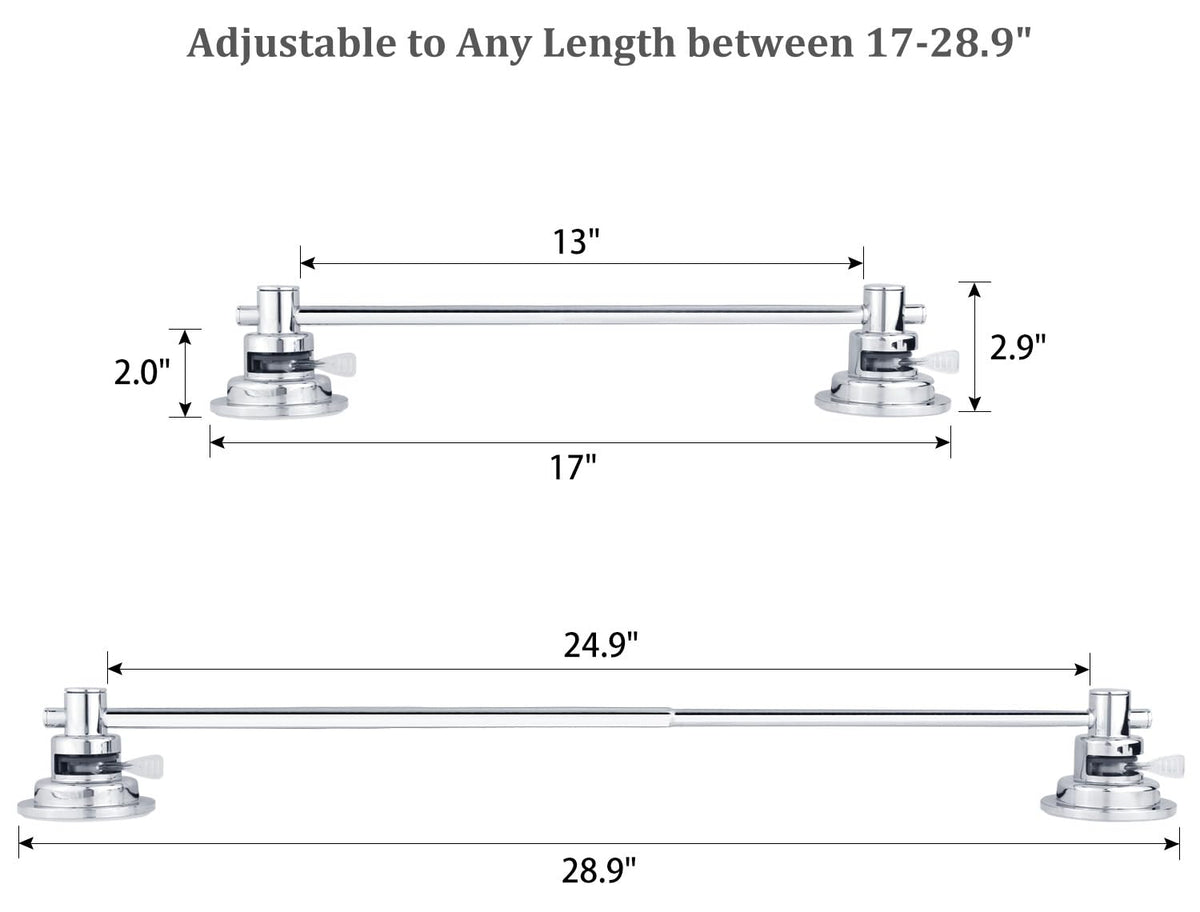 Sneatup Suction Cup Extendable 17-28'' Stainless Steel Towel Bar (Chrome Plating)