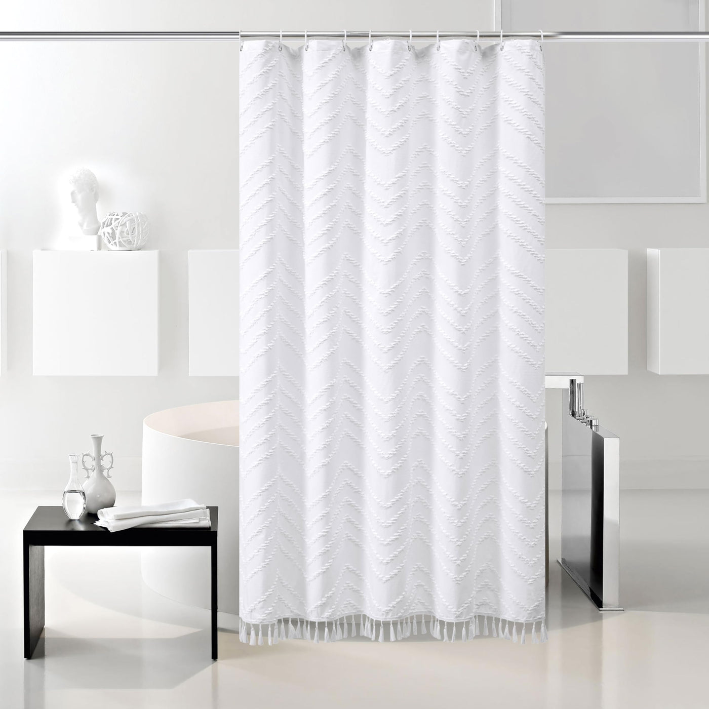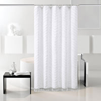 Stall Boho Shower Curtain White Tassel Woven Fabric Shower Curtain 42 X 72 Modern Farmhouse Textured Tufted Chevron Striped Mini
