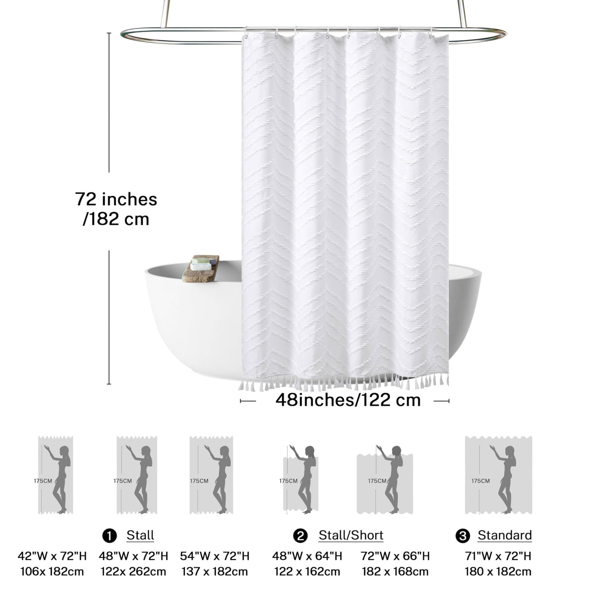 Stall Boho Shower Curtain White Tassel Woven Fabric Shower Curtain 48 X 72 Modern Farmhouse Textured Tufted Chevron Striped Mini