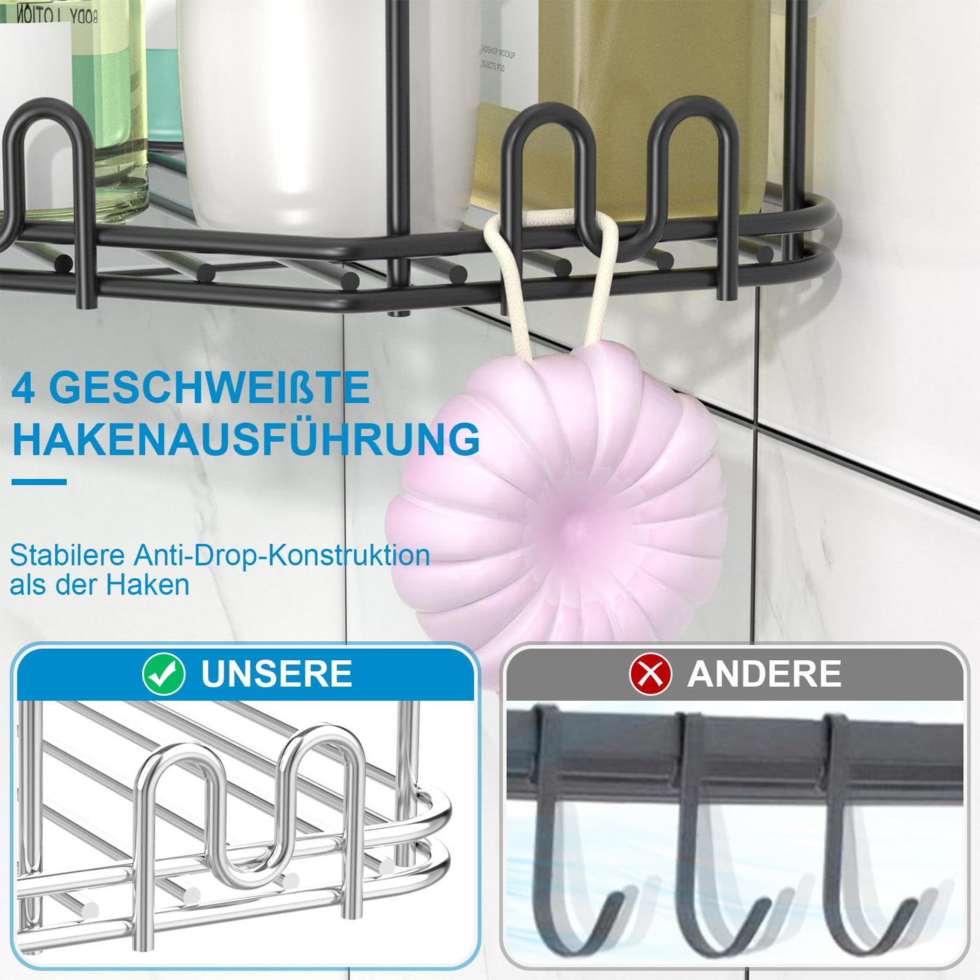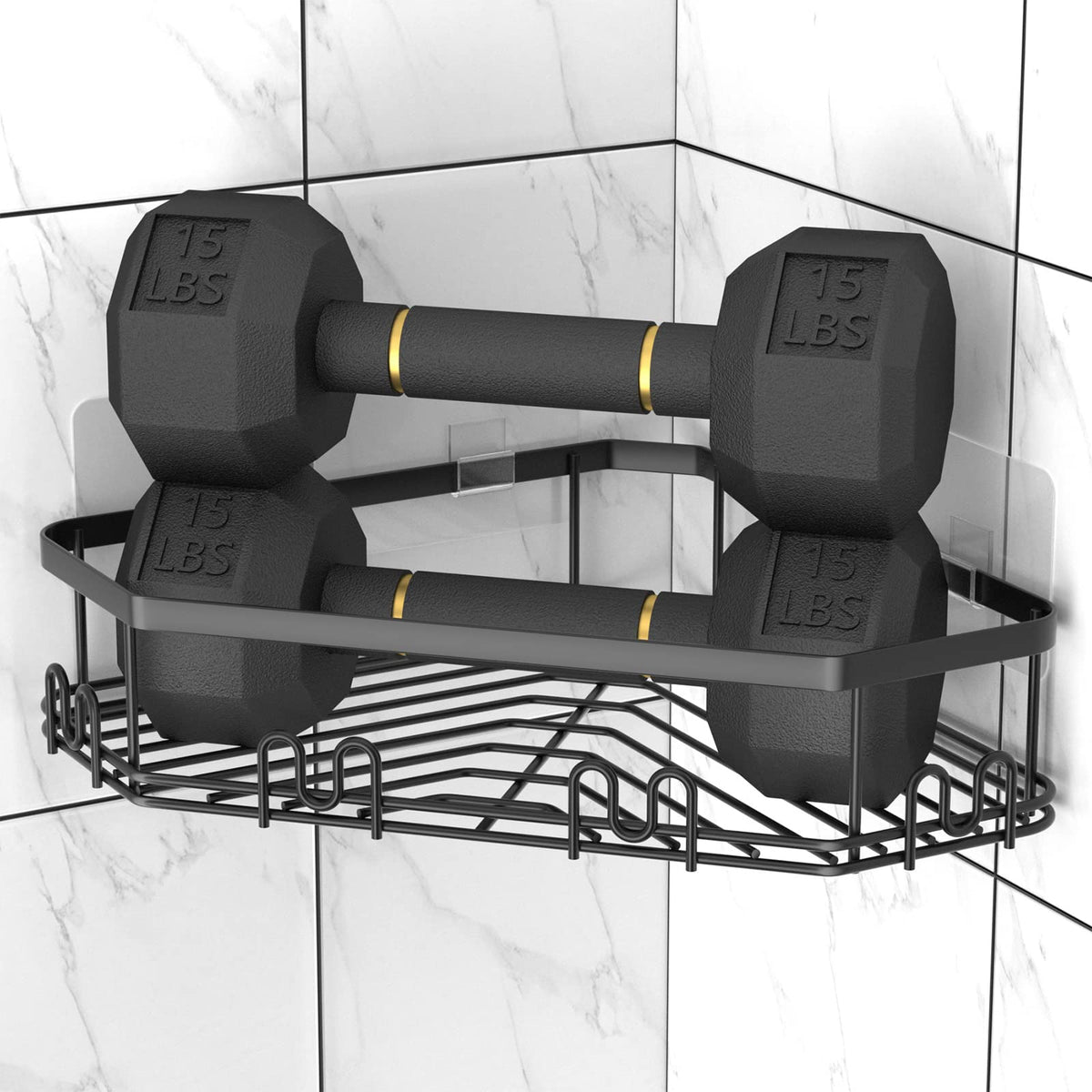 Q: What are the dimensions of the corner shower caddy shelves?A: The STEUGO Corner Shower Caddy comes in three sizes: Large (9.84 × 9.84 × 2.4 inches), Middle (9.06 × 9.06 × 2.4 inches), and Small (8.27 × 8.27 × 2.4 inches). This variety allows you to maximize storage in your corner space.