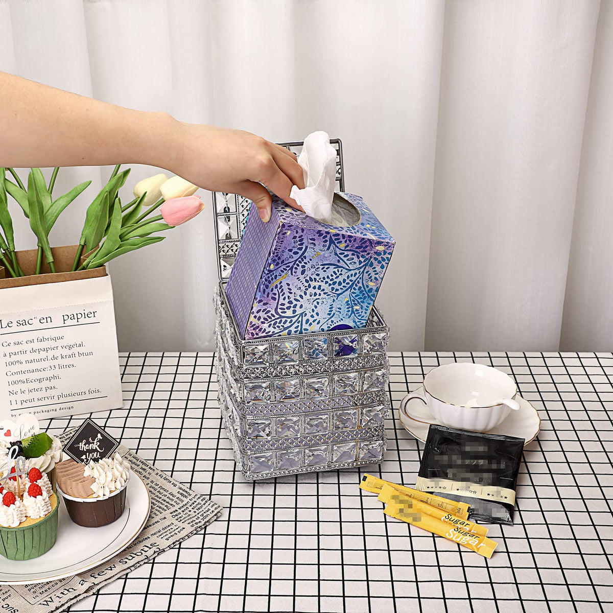 Q: Is the tissue box cover suitable as a gift?A: Yes, the Sumnacon Crystal Square Tissue Box Cover makes an excellent gift for housewarming, weddings, anniversaries, and special occasions, as it beautifully complements home decor and adds a luxurious touch.