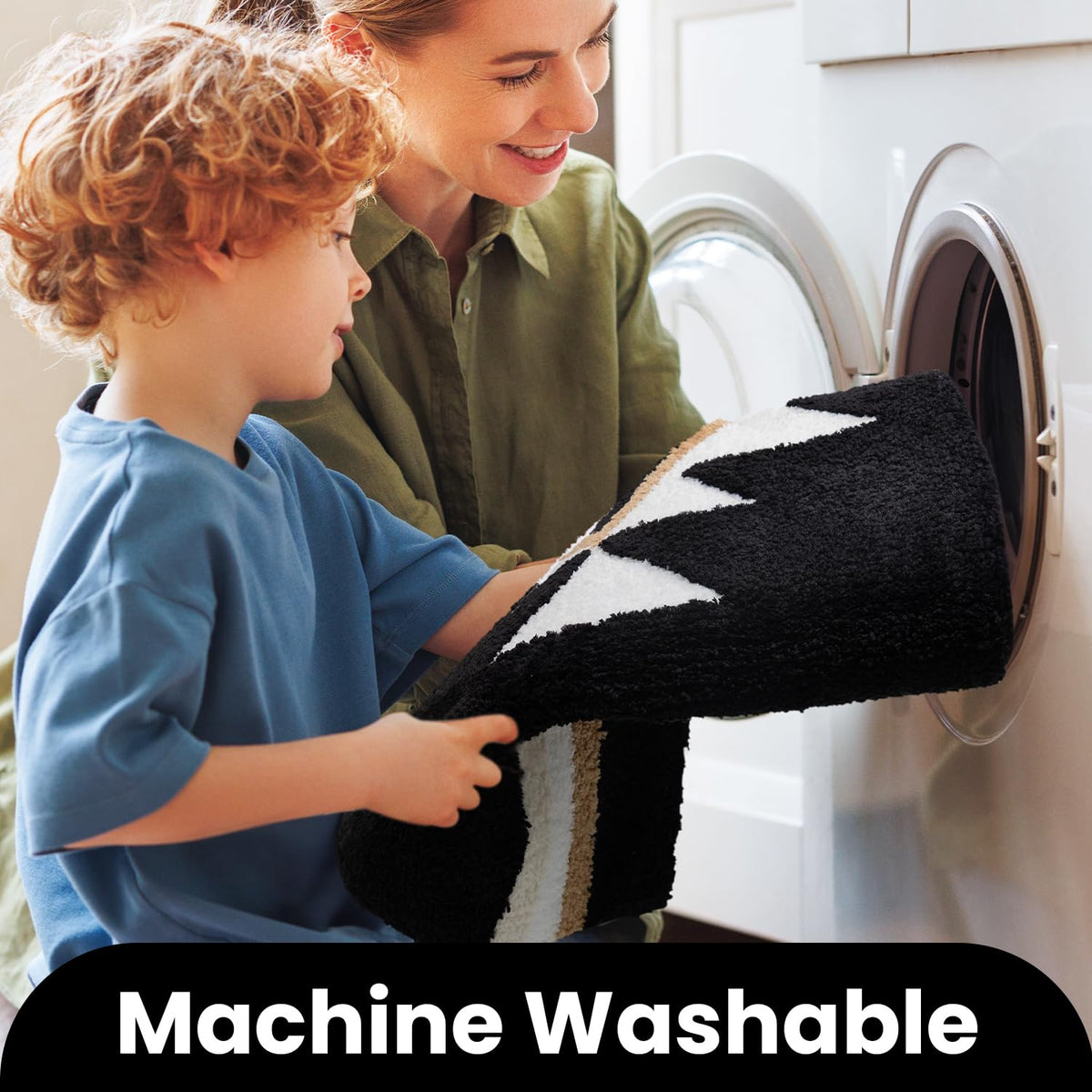 Tanvill Boho Bathroom Rugs Runner Black Non Slip Bath Mat Geometric Long Bathroom Rug 24X47