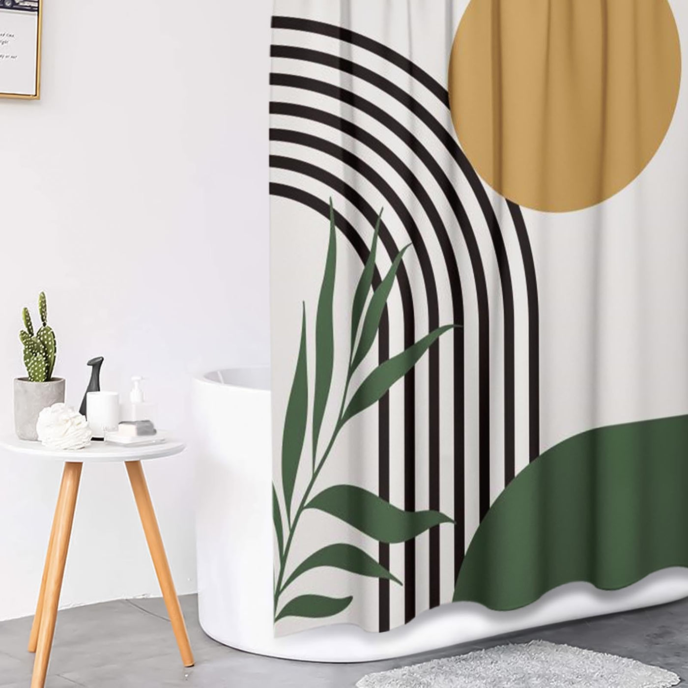 Q: How does this shower curtain set enhance bathroom decor?A: The Tayney Boho Mid Century Shower Curtain Set features high-definition pattern printing technology with rich colors and vivid designs, making it a stylish addition to modern minimalist bathrooms while creating a warm and comfortable atmosphere.