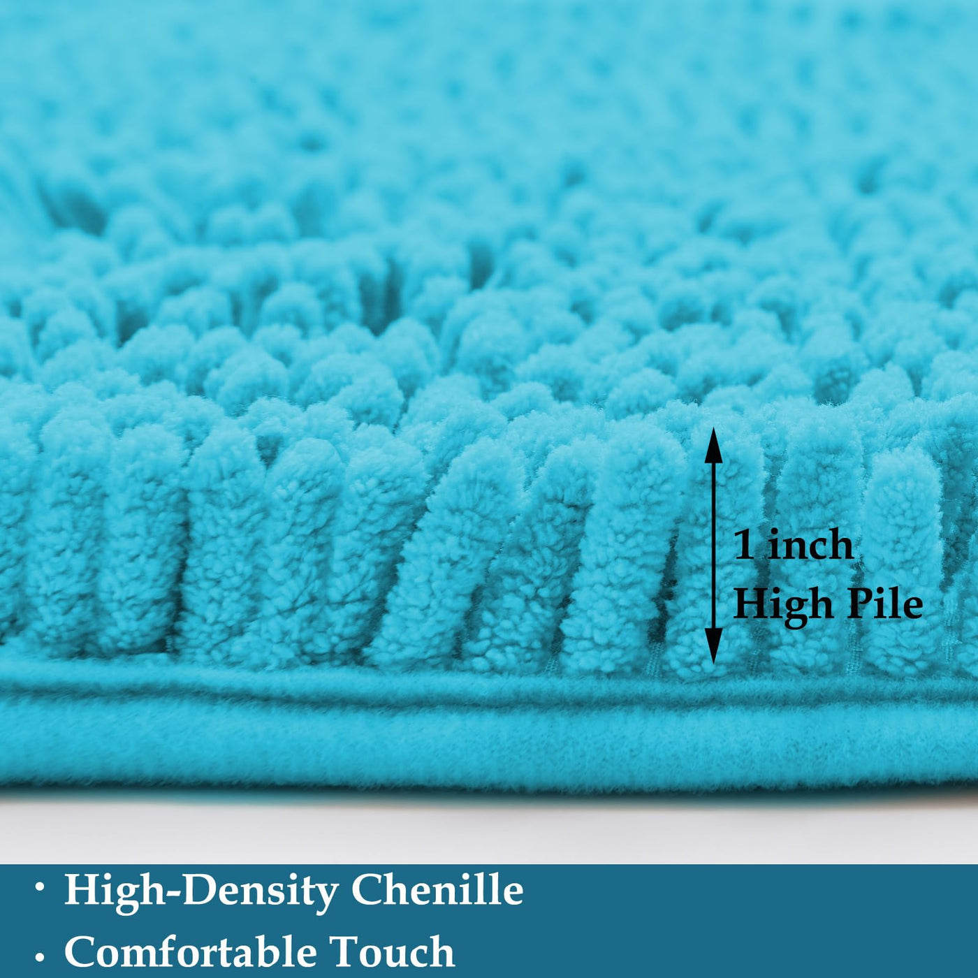 Q: What makes these bath mats ultra-absorbent?A: The bath mats are made from luxury performance chenille microfibers that quickly soak up moisture from your feet after a bath, providing a soft and comfortable experience.