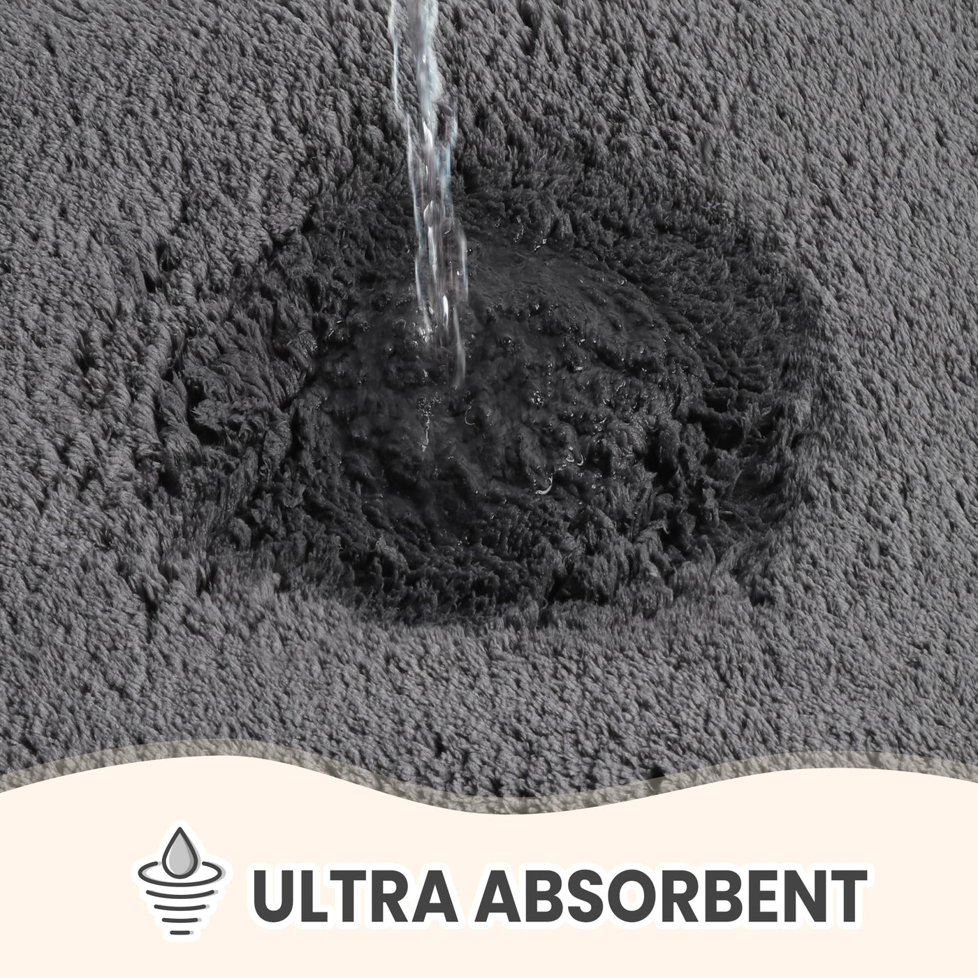Q: Does the rug absorb water effectively?A: Yes, the thick microfiber material is designed to absorb water quickly, helping to keep your bathroom floors dry and safe from moisture.