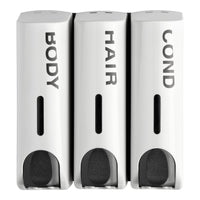 Shower Slim Trio Dispensers Are Ideal For Hotels, Fitness Centers, And Home Usage In Shower Stalls. The Removable 350 Ml Cartridge Comes In Refillable Or Non-Refillable For Easy Load Out And Maintenance. Dispenser Made From Durable Abs Plastic With A Glossy Finish, Which Will Retain Its Fresh Clean Look For Extra-Long Periods. Shower Slim Also Available In Single Or Duo Units.
