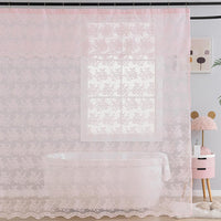 Q: What type of fabric is the shower curtain made from?A: The shower curtain is crafted from premium lace fabric that is lightweight and breathable, providing a classic vintage look.