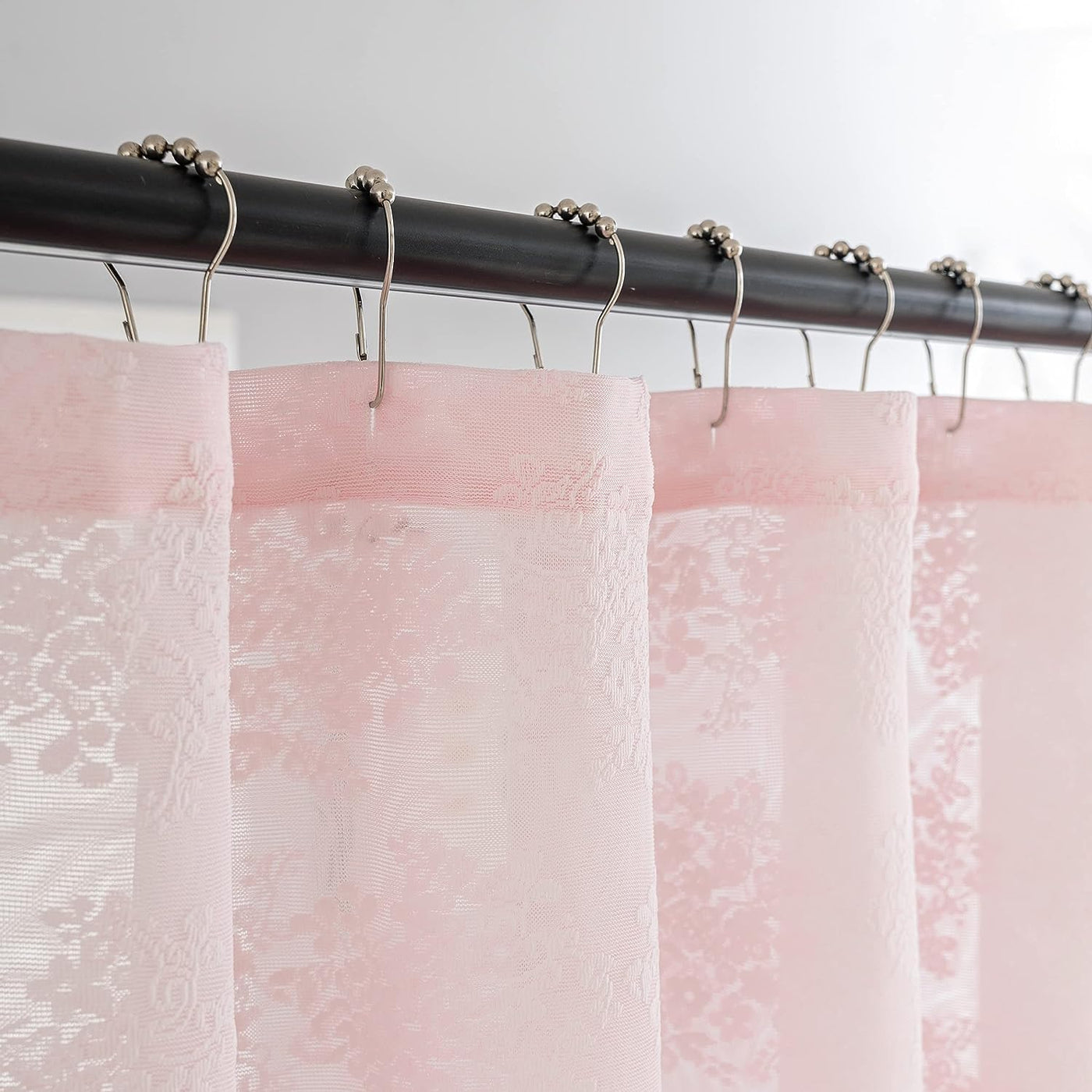 Tudeco Pink Long Shower Curtain 84 Inches Length With Attach Valance Cottagecore Lace Shower Curtain For Bathroom Cute Girly Shower Curtain Modern Farmhouse Boho Bathroom Curtains 72X84 Package Includes:1 Panel Lace Sheer Shower Curtain&Nbsp; Material :100% Polyester Lace Fabric Pattren:Floral Color: Pink Size: 72 X 84 Inch
