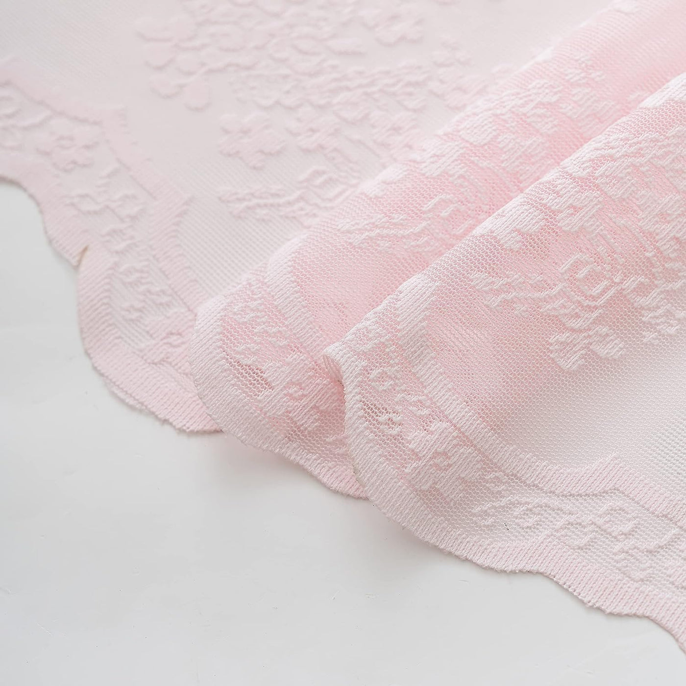 Tudeco Pink Long Shower Curtain 84 Inches Length With Attached Valance, Spring Floral Lace Shower Curtain For Bathroom Cute Girl