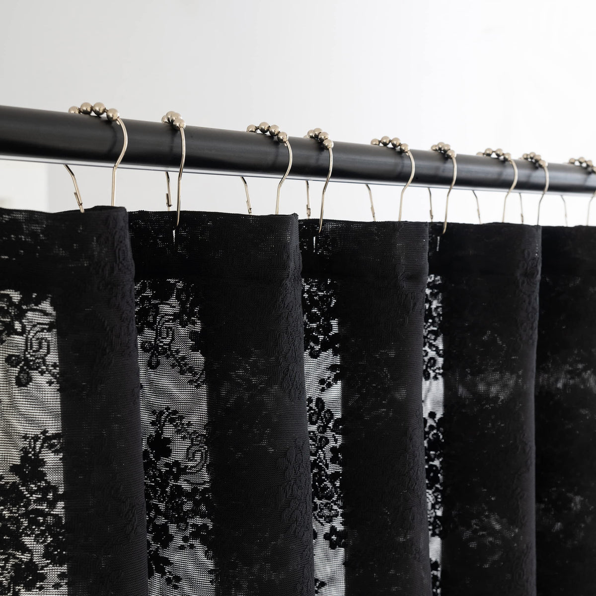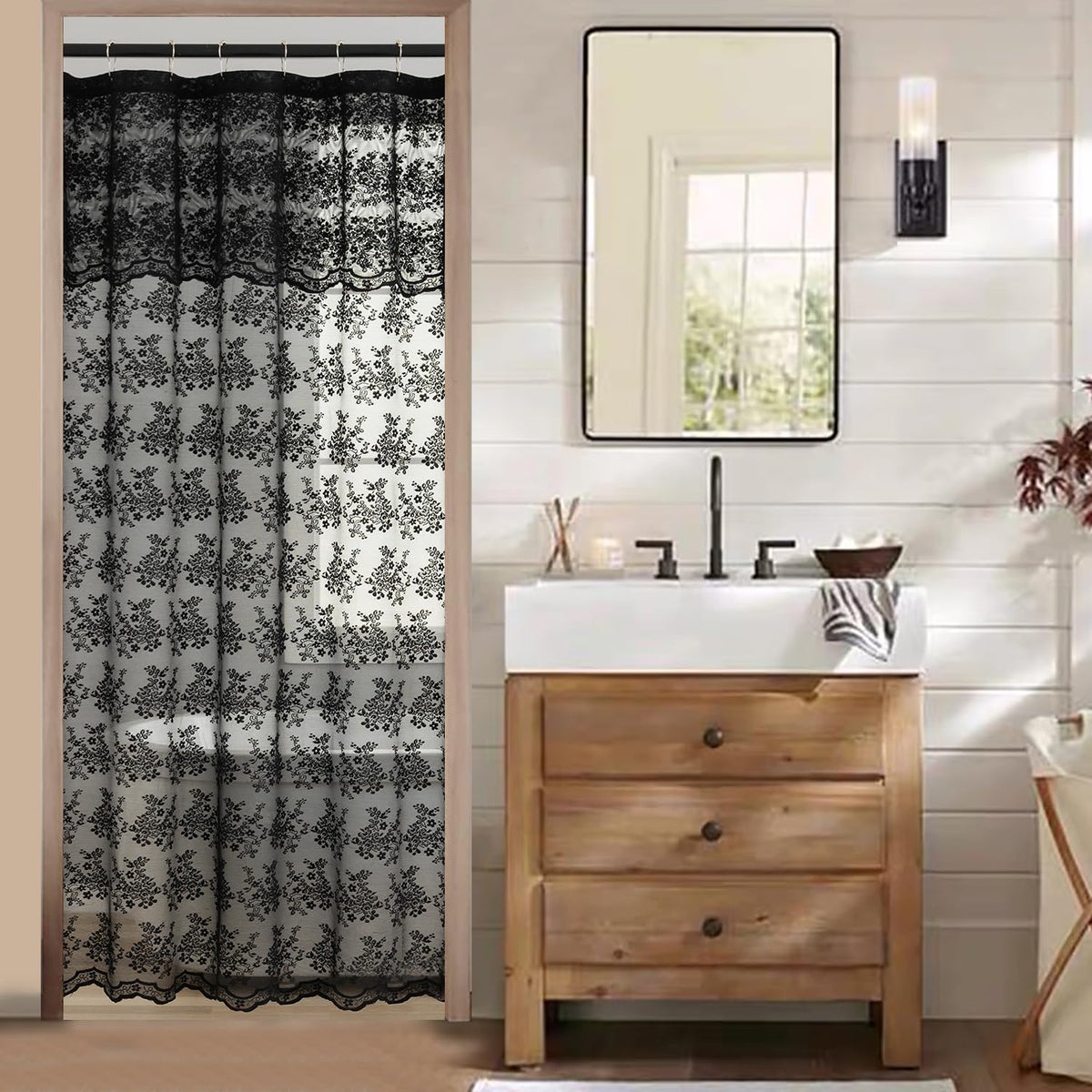 Gothic Black Lace Stall Shower Curtain With Attach Valance 36 X 72 Inch, 1 Panel&Nbsp;Material: 100% Quality Lace Fabric Patterm: Floral Size: W36 X L72 Color: Black&Nbsp;Header Type: Reinforced Holes Package Includes: 1 Panels Lace Small Shower Curtain With Attach Valance&Nbsp;Care Instruction-&Nbsp;&Nbsp;Machine Wash Cold Water; Tumble Dry Low; Cool Iron If Needed; Do Not Bleach