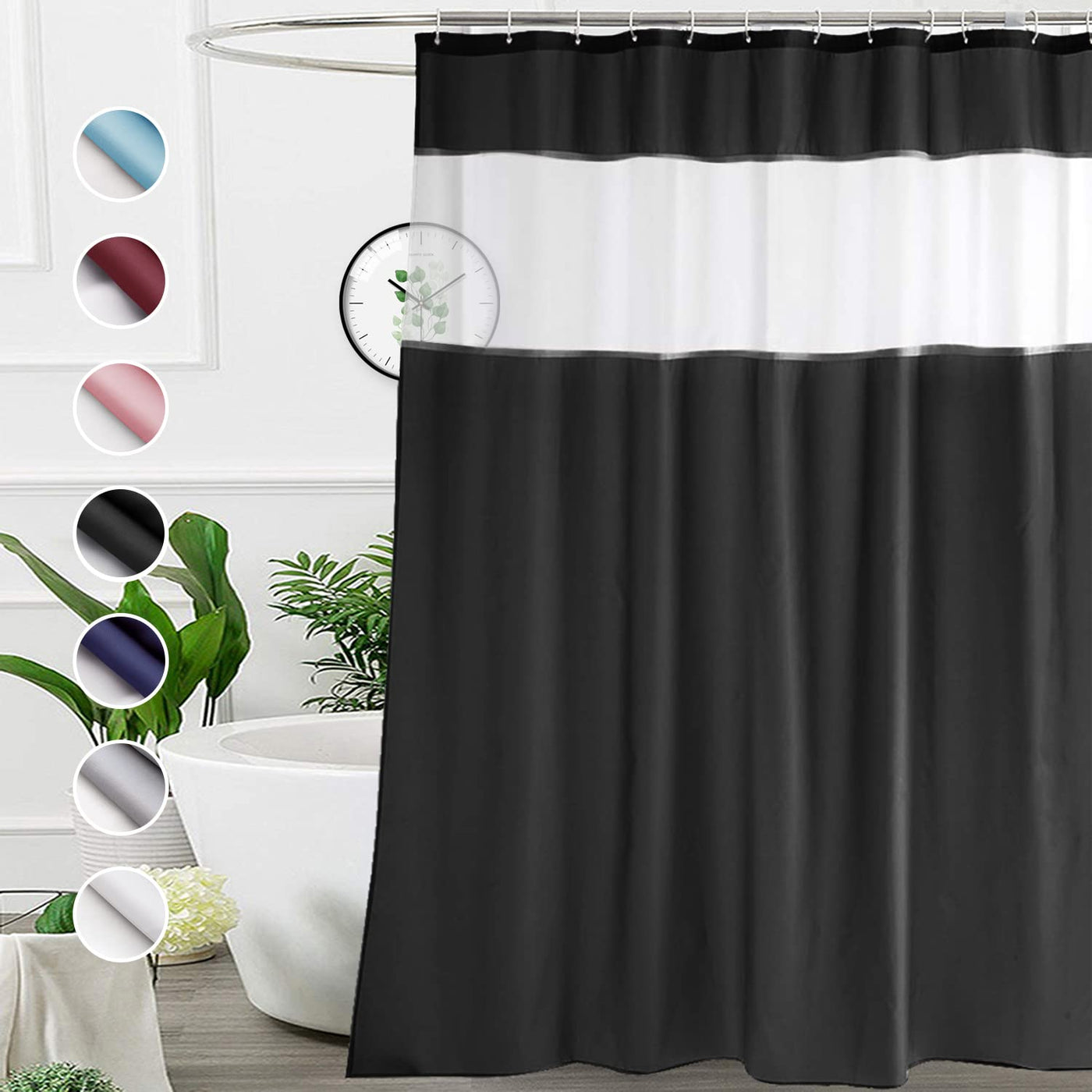 Ufriday Black And White Shower Curtain 72 X 72 Inch, Machine Washable Fabric Shower Curtains For Bathroom With Mesh Top Window,