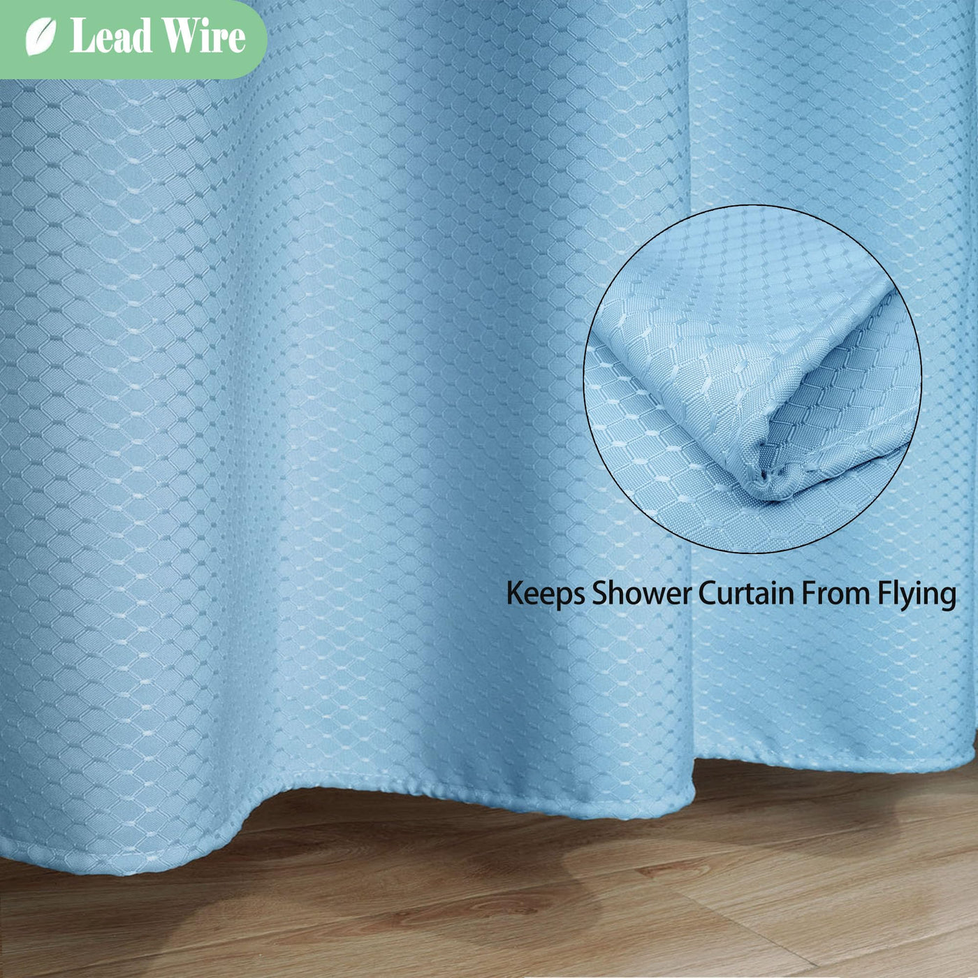 Q: What makes the UFRIDAY shower curtain heavier and thicker than others?A: The UFRIDAY shower curtain is designed to be heavier and thicker than most other curtains, which enhances its durability and helps prevent it from blowing around in the shower.