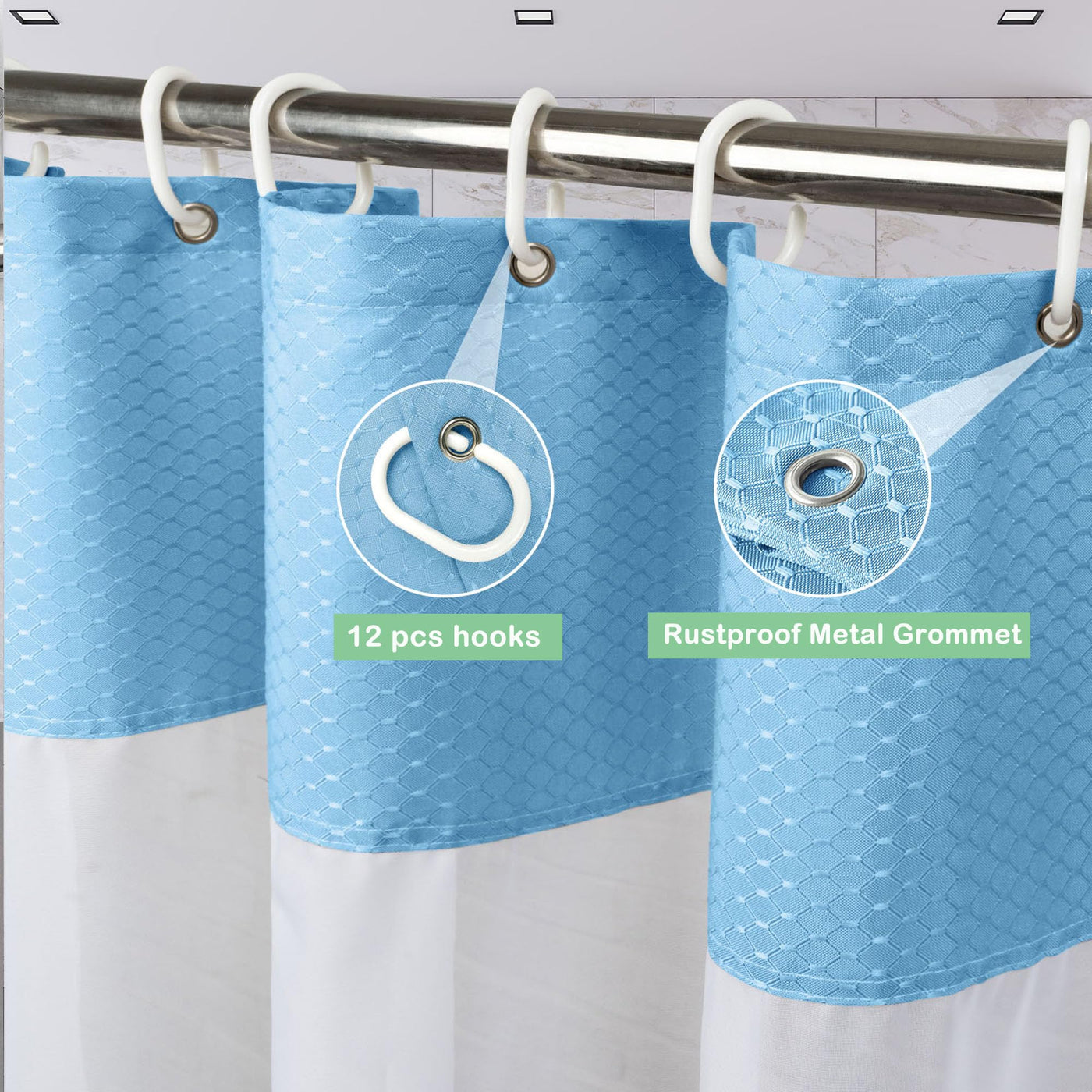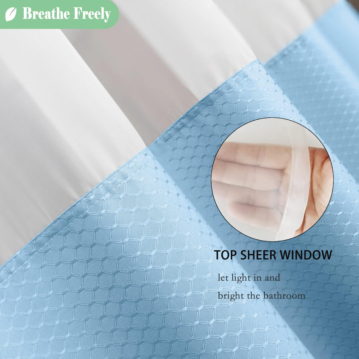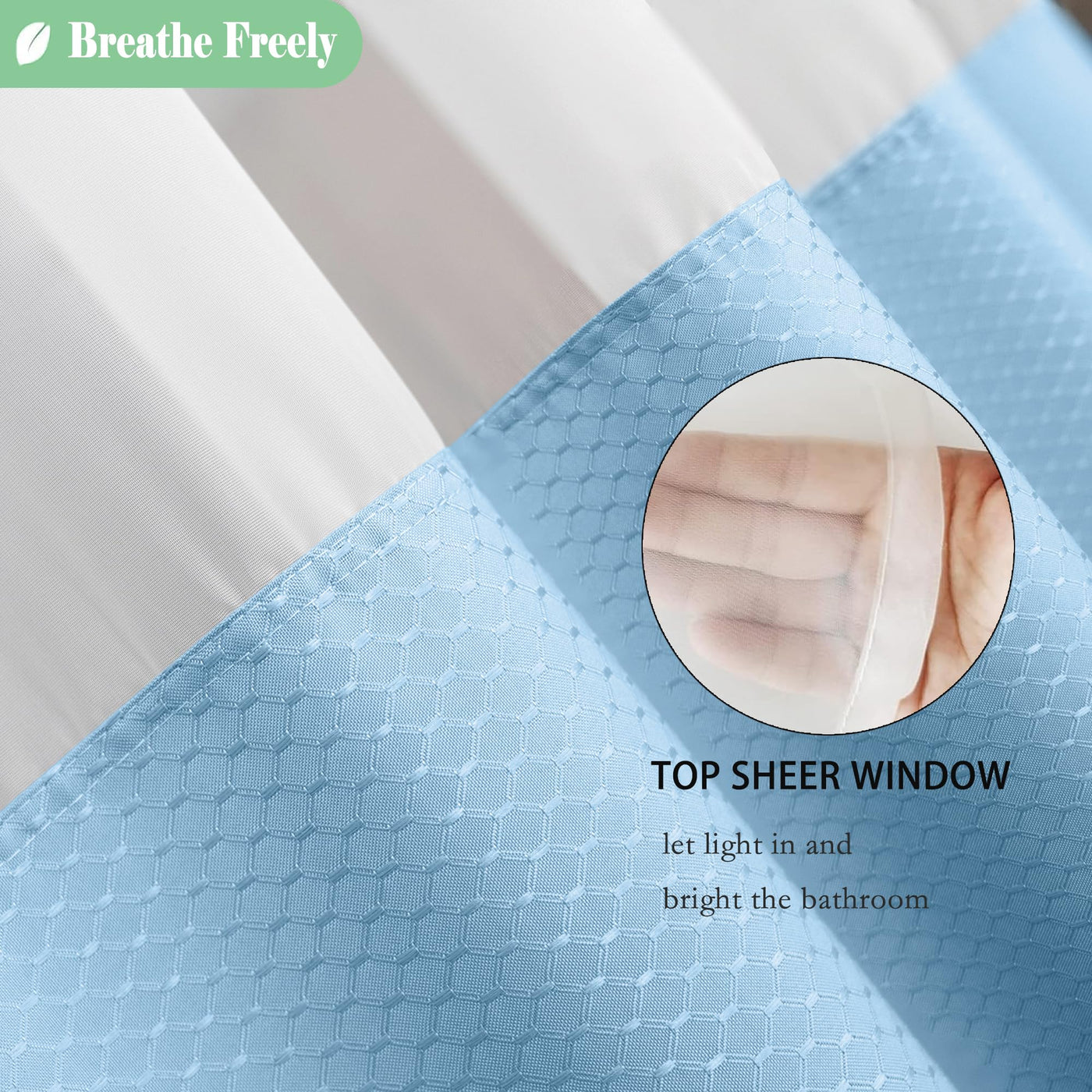 Ufriday Waffle Weave Fabric Shower Curtain With Mesh Window, Heavy Duty Decorative Bathroom Curtain With White Pique Pattern, Sp