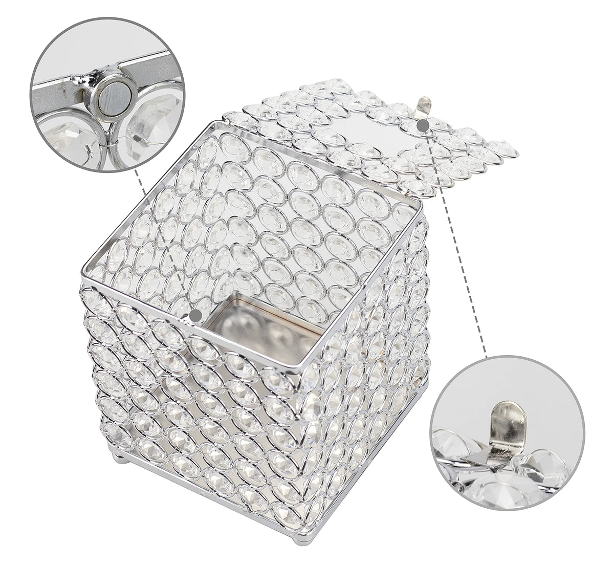 Add A Sparkling Feminine Touch To Your Bathroom Countertop, Livingroom Table And Bedroom Dresser/Vanity D Cor With This Beautifully Handmade Crystal Refillable Facial Tissue Box Cover!This Tissue Box Is Handcrafted With Much More Manual Work And Care Than Those Machine-Made Products. The Wiremesh Frame Of The Box Is Hand-Welded Piece By Piece By Our Most Skilled Welders And The Crystals Are Hand-Stringed Piece By Piece To The Wiremesh By Our Experienced Artisans. The Whole Handcrafting Process Of Each Box Takes About 2 Hours Which Is Much Longer Than Any Other Machine-Made Items. Everything That Takes Time To Come Takes Value To Go. Hope You Love What We'Ve Made.