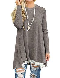 Womens Crew Neck Long Sleeve Lace Splicing Swing Shirt Dresses Long Tunic Blouses Shirts For Leggings Gray