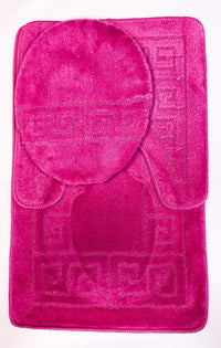 Wpm World Products Mart 3 Piece Bath Rug Set Pattern Bathroom Rug (20X32)Large Contour Mat (20X20) With Lid Cover (Hot Pink)