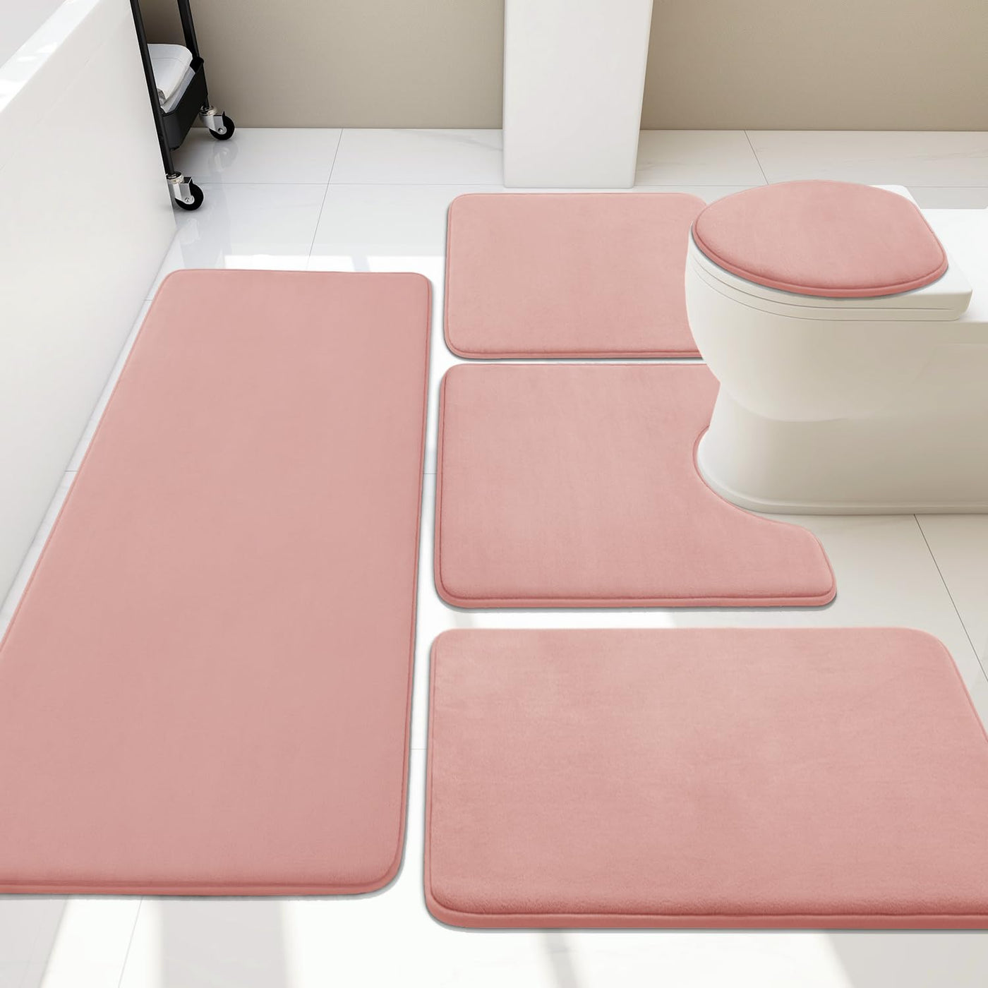 Q: Is the bath mat set machine washable?A: Yes, the YIHOUSE Memory Foam Bath Mat Set is machine washable. You can wash it in cold water on a gentle cycle, and it dries exceptionally fast, making it easy to maintain without worrying about fiber loss.