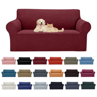 2025 New Stretch Loveseat Sofa Slipcovers Couch Cover For 2 Cushion Furniture Protector Sofa Covers With Elastic Bottom Jacquard Fabric Small Checks For Pets, Kids - Dark Red