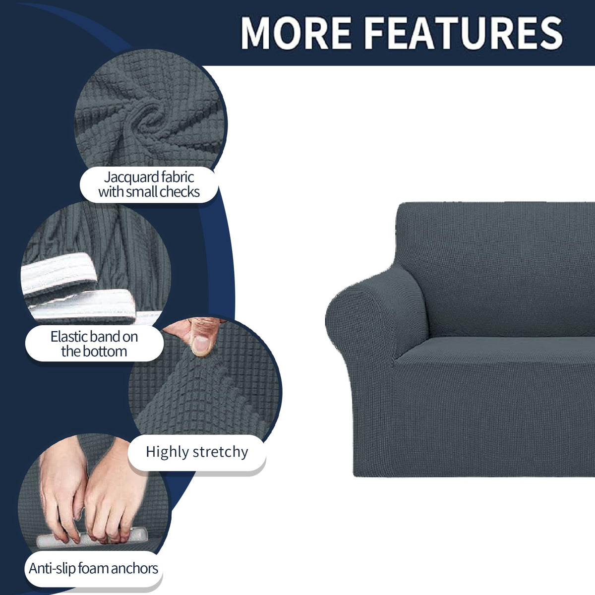 Introducing our Stretch Sofa Cover, the perfect solution to protect and refresh your beloved furniture. Crafted with high-quality materials, this stretchable slipcover offers a snug fit for your sofa, ensuring it stays in place without any slipping or sliding. Designed with both style and functionality in mind, our stretch sofa cover effortlessly transforms your living space into a cozy haven. Its stretchable fabric allows for a seamless fit over your sofa, while the cushion couch covers provide an extra layer of protection against spills, stains, and everyday wear and tear. Not only does our sofa cover act as a furniture protector, but it also adds a touch of elegance to your home decor. With a wide range of colors and patterns to choose from, you can easily find the perfect match for your existing furniture. Whether you have a classic or contemporary style, our stretch sofa slipcover will seamlessly blend in, giving your living room a fresh and sophisticated look. Easy to install and maintain, this stretch sofa cover is a practical choice for busy households. It is machine washable, allowing for hassle-free cleaning whenever needed. Additionally, the durable fabric ensures long-lasting performance, making it a worthwhile investment for your furniture. Upgrade your couch with our Stretch Sofa Cover and enjoy the benefits of a stylish, comfortable, and protected seating area. Perfect for any couch or chair, this versatile slipcover is an essential addition to your home. Transform your living space today and experience the difference our stretch sofa cover can make!