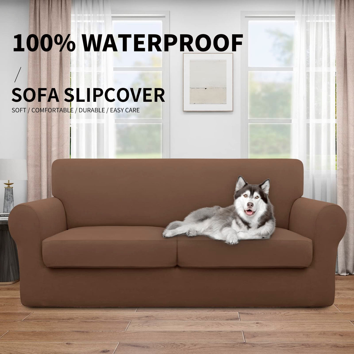 Easy-Going 100% Dual Waterproof Oversized Loveseat Cover Stretch Soft Couch Cover For Dogs, Sofa Slipcover For 2 Separate Cushion Couch Leakproof Furniture Protector For Kids, Pets Brown