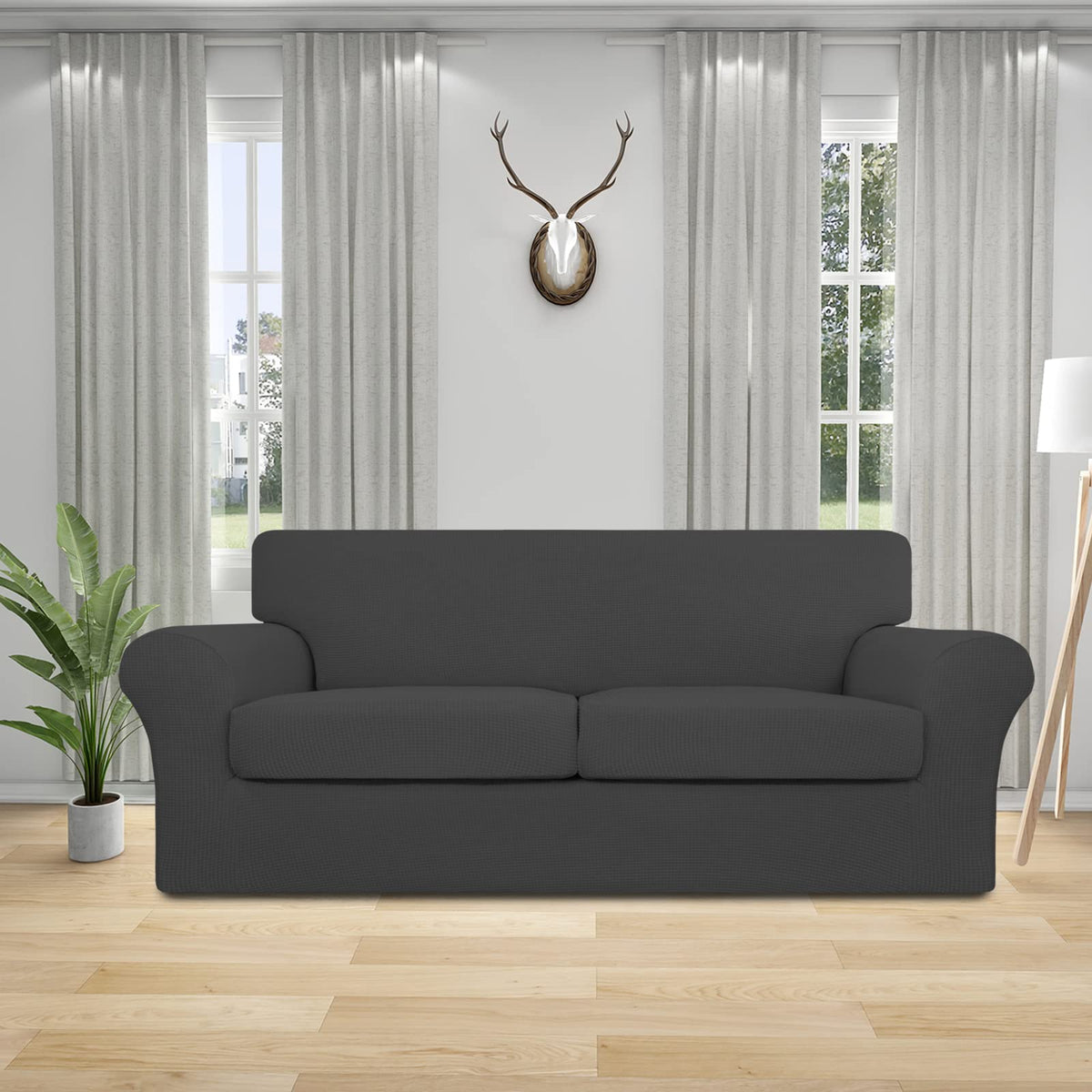 Easy-Going 3 Pieces Stretch Oversized Loveseat Couch Cover For 2 Cushion Couch Sofa Cover For Dogs Washable Sofa Slipcover Elastic Furniture Protector For Pets (Dark Gray, Oversized Loveseat)