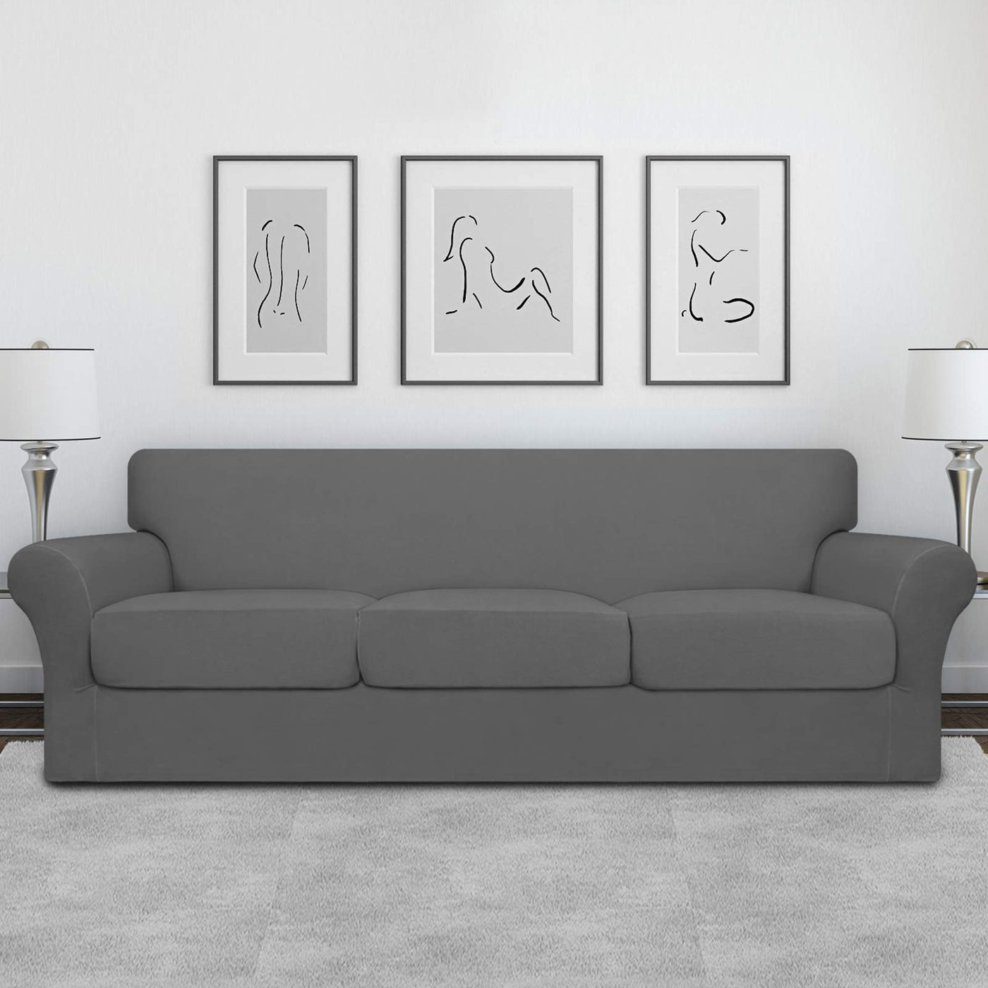 Easy-Going 4 Pieces Oversized Stretch Soft Couch Cover For Dogs - Washable Sofa Slipcover For 3 Separate Cushion Couch - Elastic Furniture Protector For Pets, Kids Grey