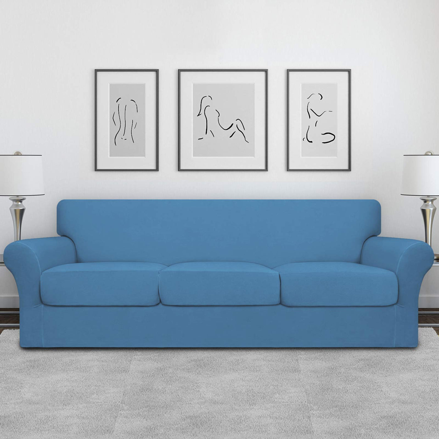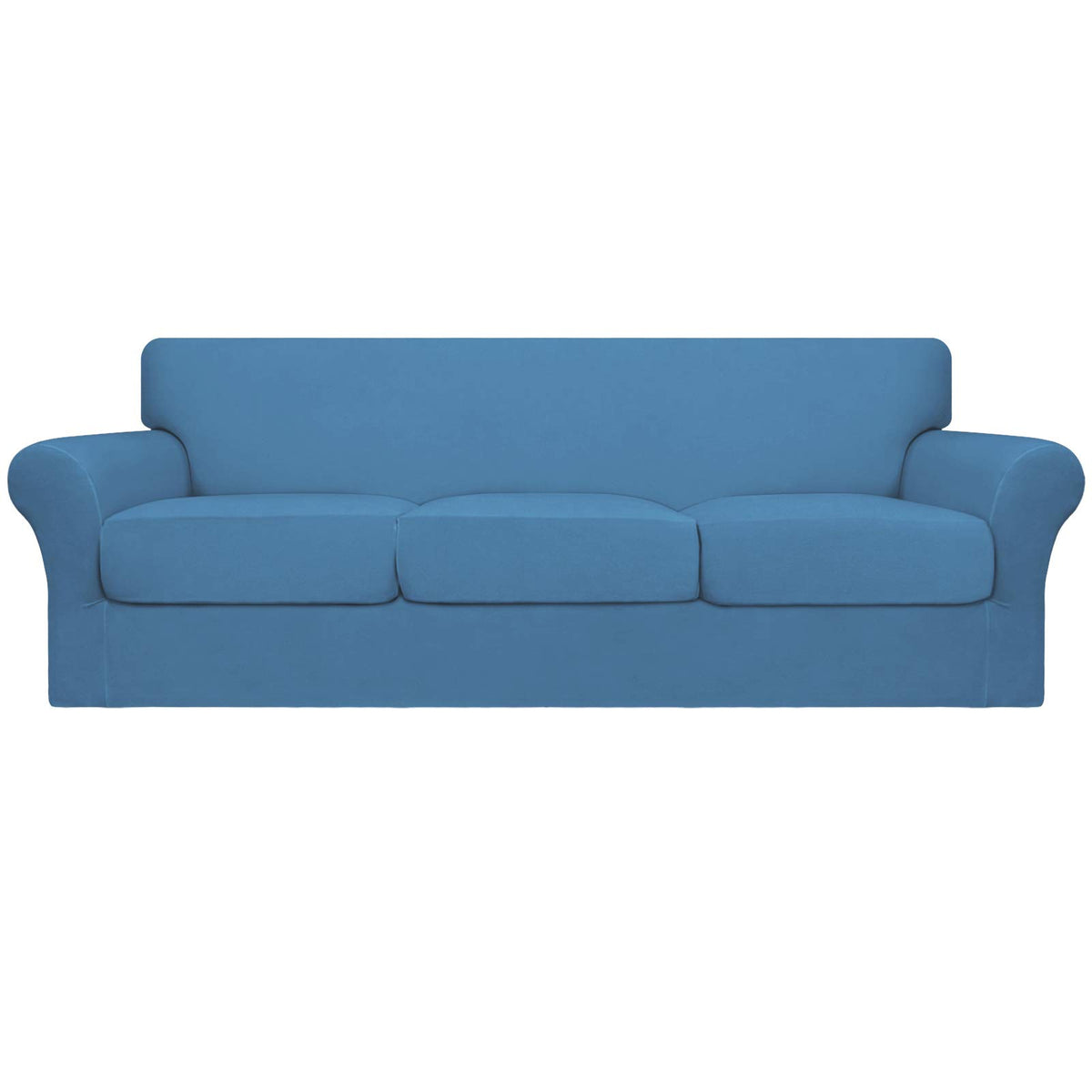 Easy-Going 4 Pieces Oversized Stretch Soft Couch Cover For Dogs - Washable Sofa Slipcover For 3 Separate Cushion Couch - Elastic Furniture Protector For Pets, Kids Light Blue