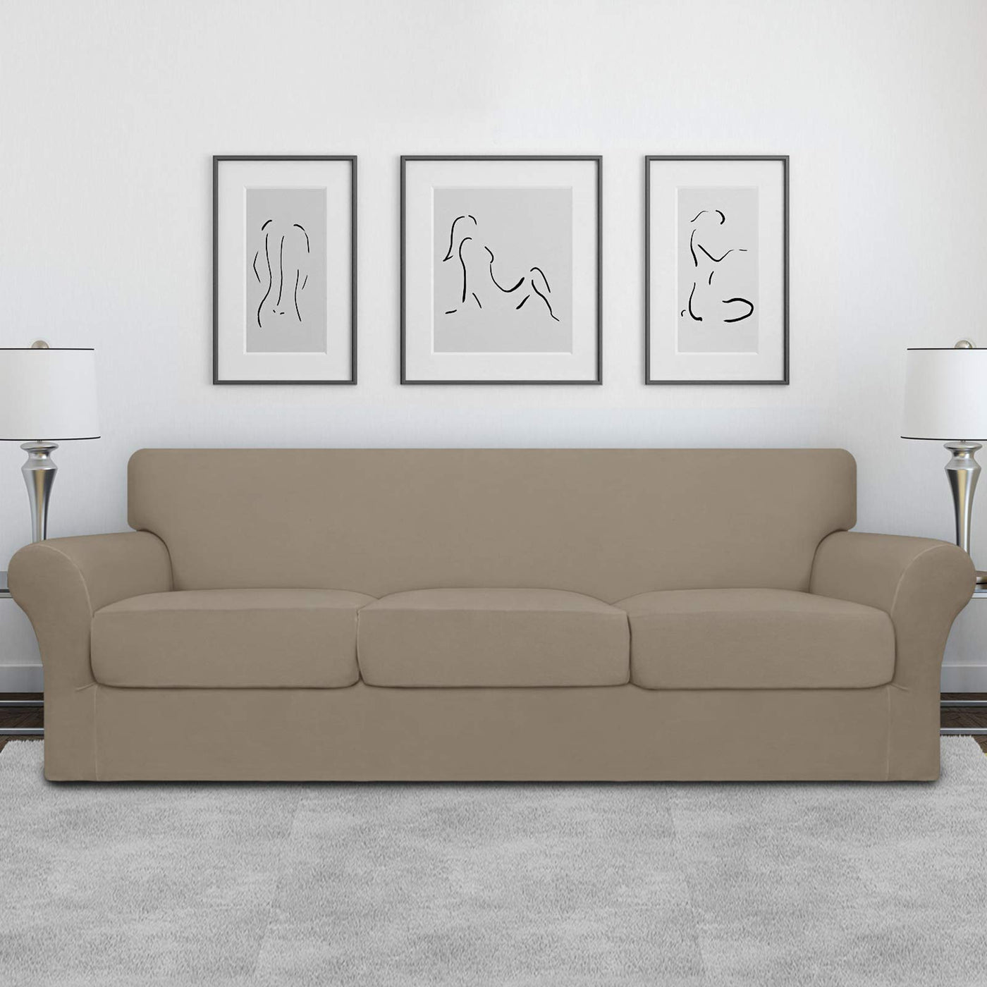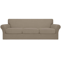 Easy-Going 4 Pieces Oversized Stretch Soft Couch Cover For Dogs - Washable Sofa Slipcover For 3 Separate Cushion Couch - Elastic Furniture Protector For Pets, Kids Natural