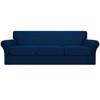 Easy-Going 4 Pieces Oversized Stretch Soft Couch Cover For Dogs - Washable Sofa Slipcover For 3 Separate Cushion Couch - Elastic Furniture Protector For Pets, Kids Navy