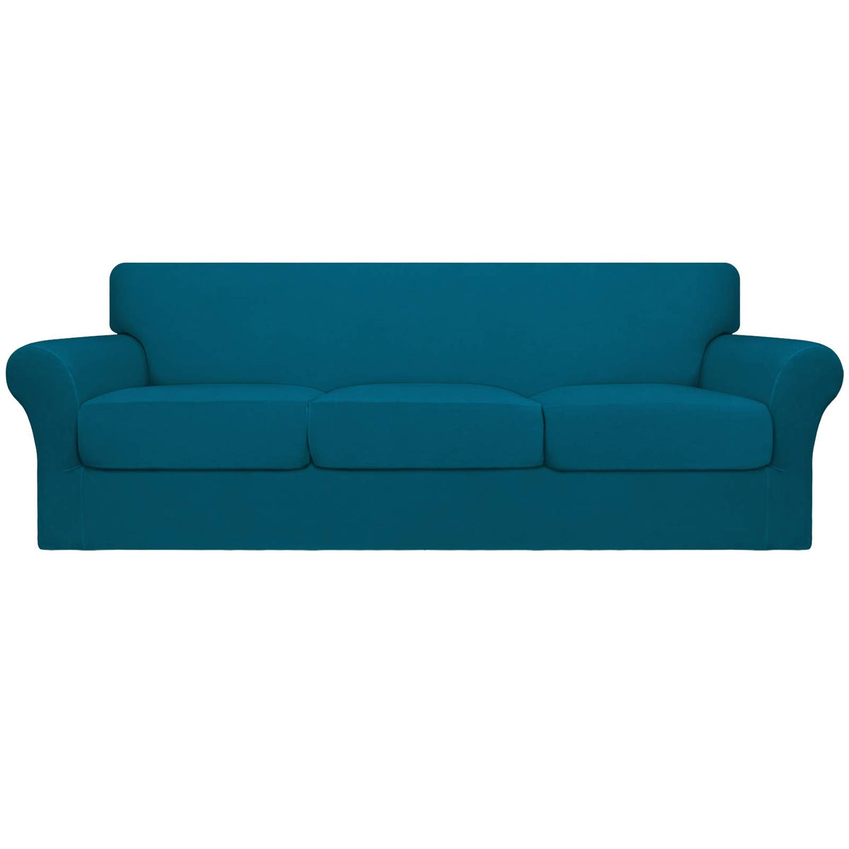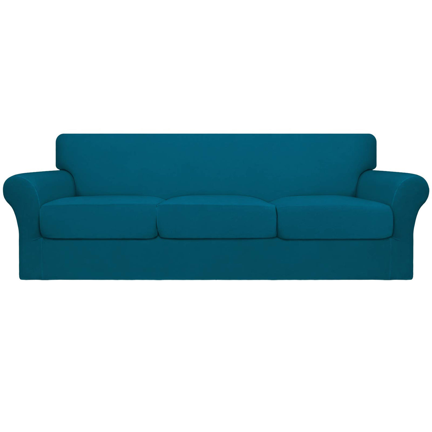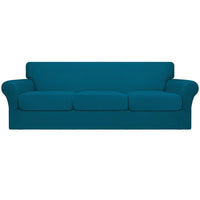Easy-Going 4 Pieces Oversized Stretch Soft Couch Cover For Dogs - Washable Sofa Slipcover For 3 Separate Cushion Couch - Elastic Furniture Protector For Pets, Kids Peacock Blue