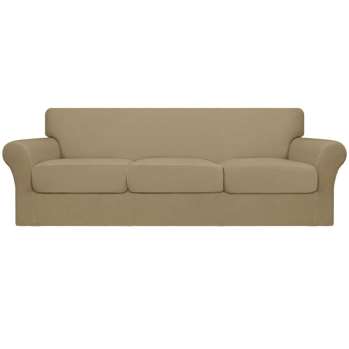 Easy-Going 4 Pieces Oversized Stretch Soft Couch Cover For Dogs - Washable Sofa Slipcover For 3 Separate Cushion Couch - Elastic Furniture Protector For Pets, Kids Tan