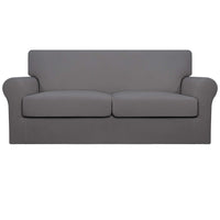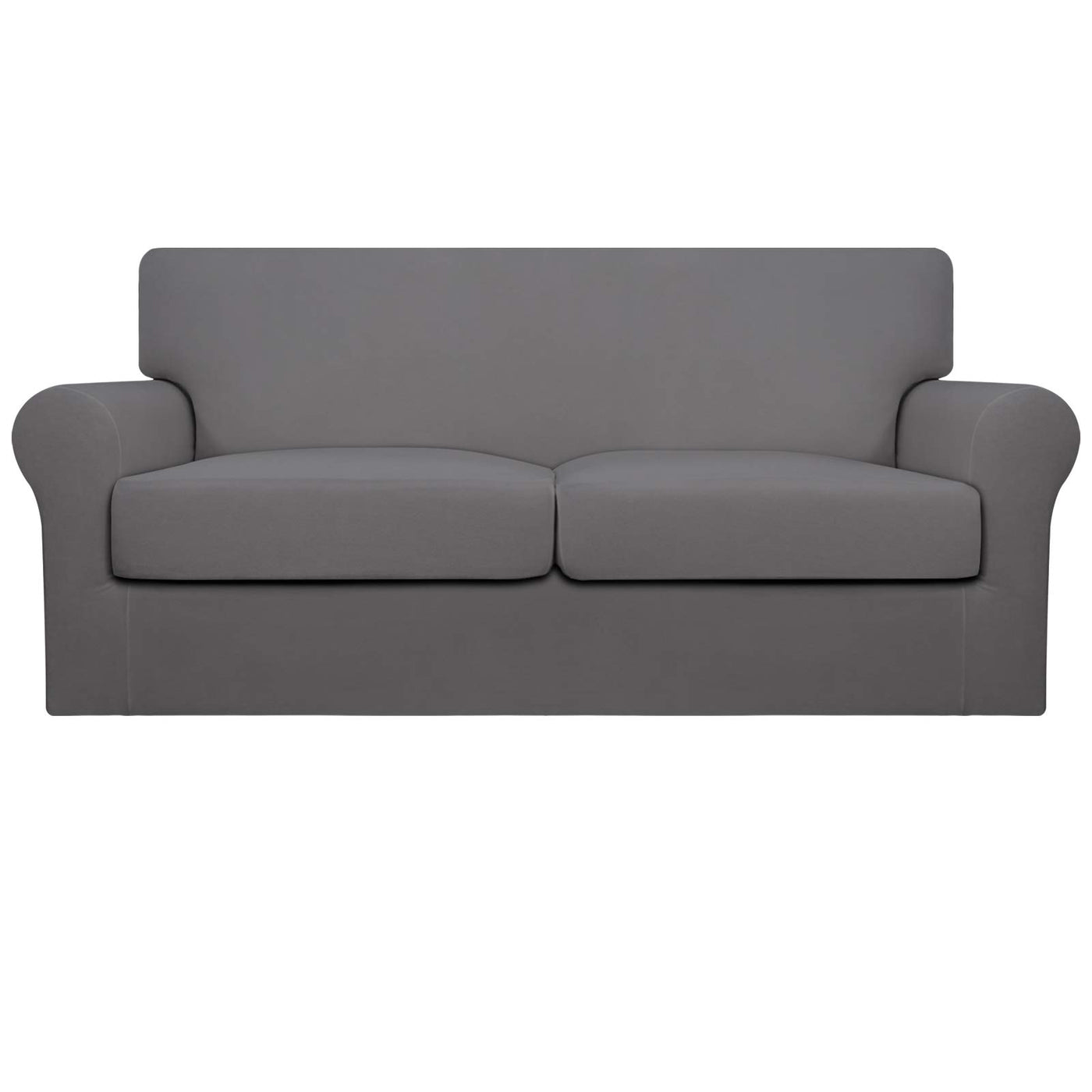 Easy-Going Oversized 3 Pieces Stretch Fleece Soft Loveseat Couch Cover For Pets - Washable Sofa Slipcover For 2 Separate Cushion Couch - Elastic Furniture Protector For Dogs, Kids Light Gray
