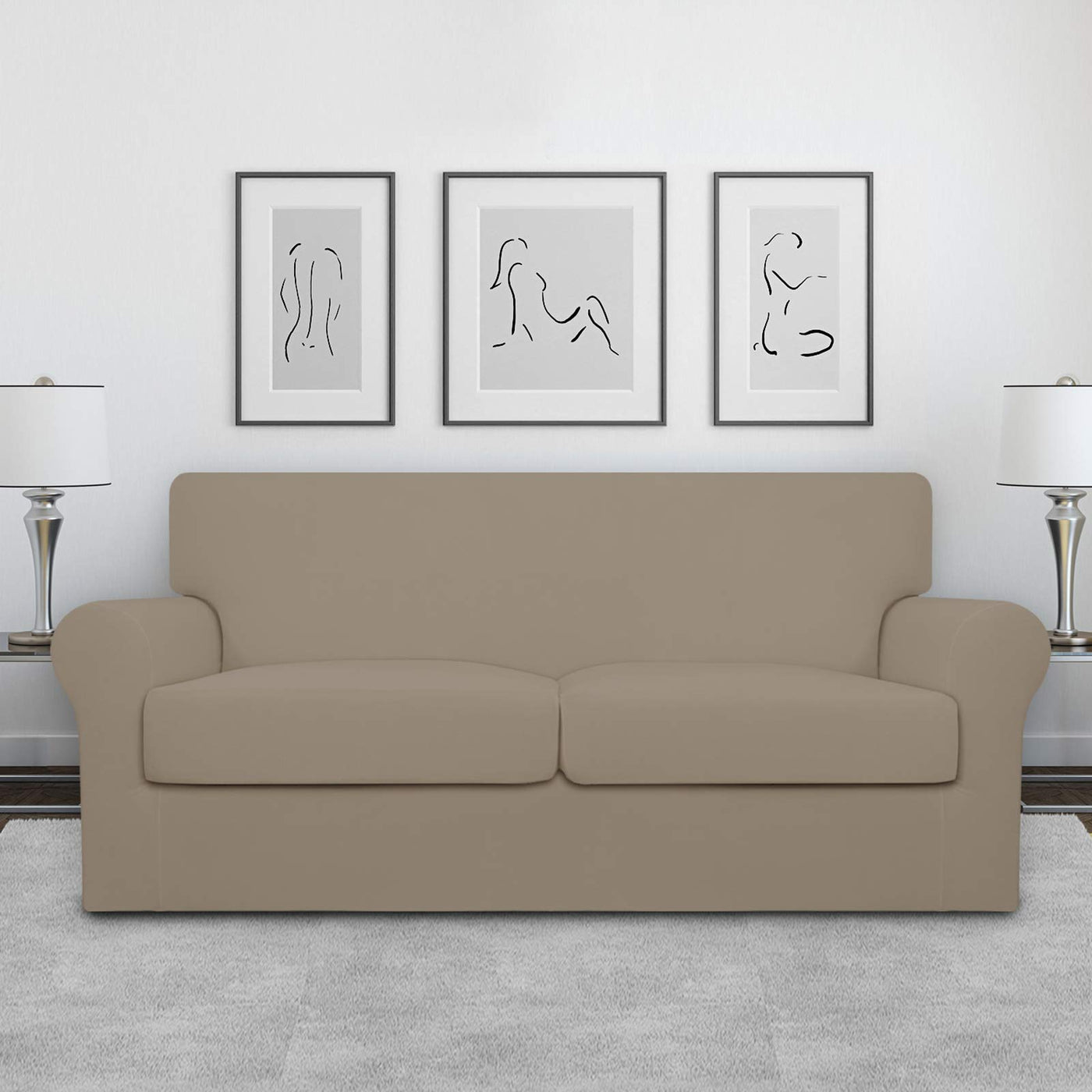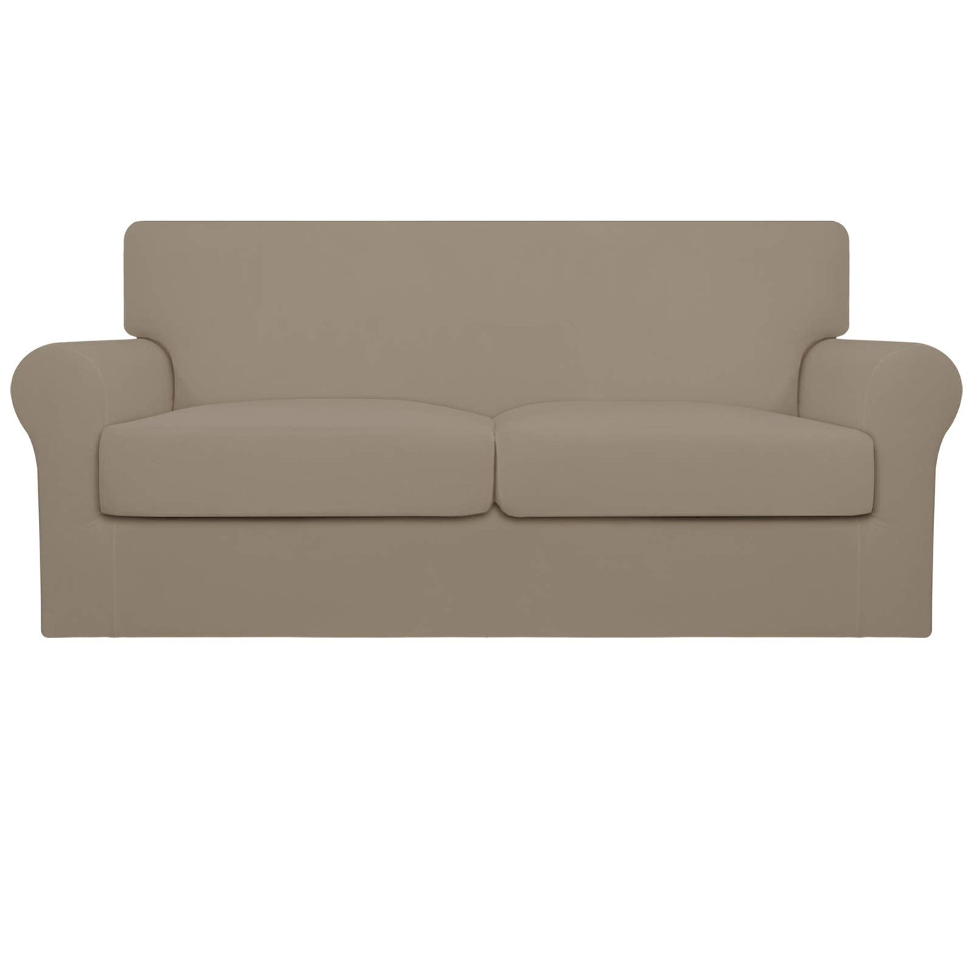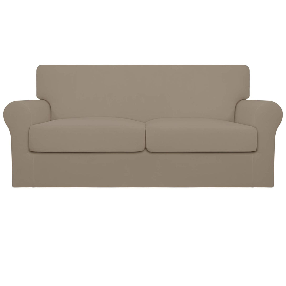 Easy-Going Oversized 3 Pieces Stretch Fleece Soft Loveseat Couch Cover For Pets - Washable Sofa Slipcover For 2 Separate Cushion Couch - Elastic Furniture Protector For Dogs, Kids Natural