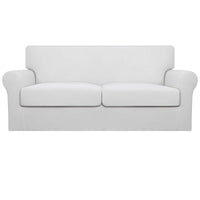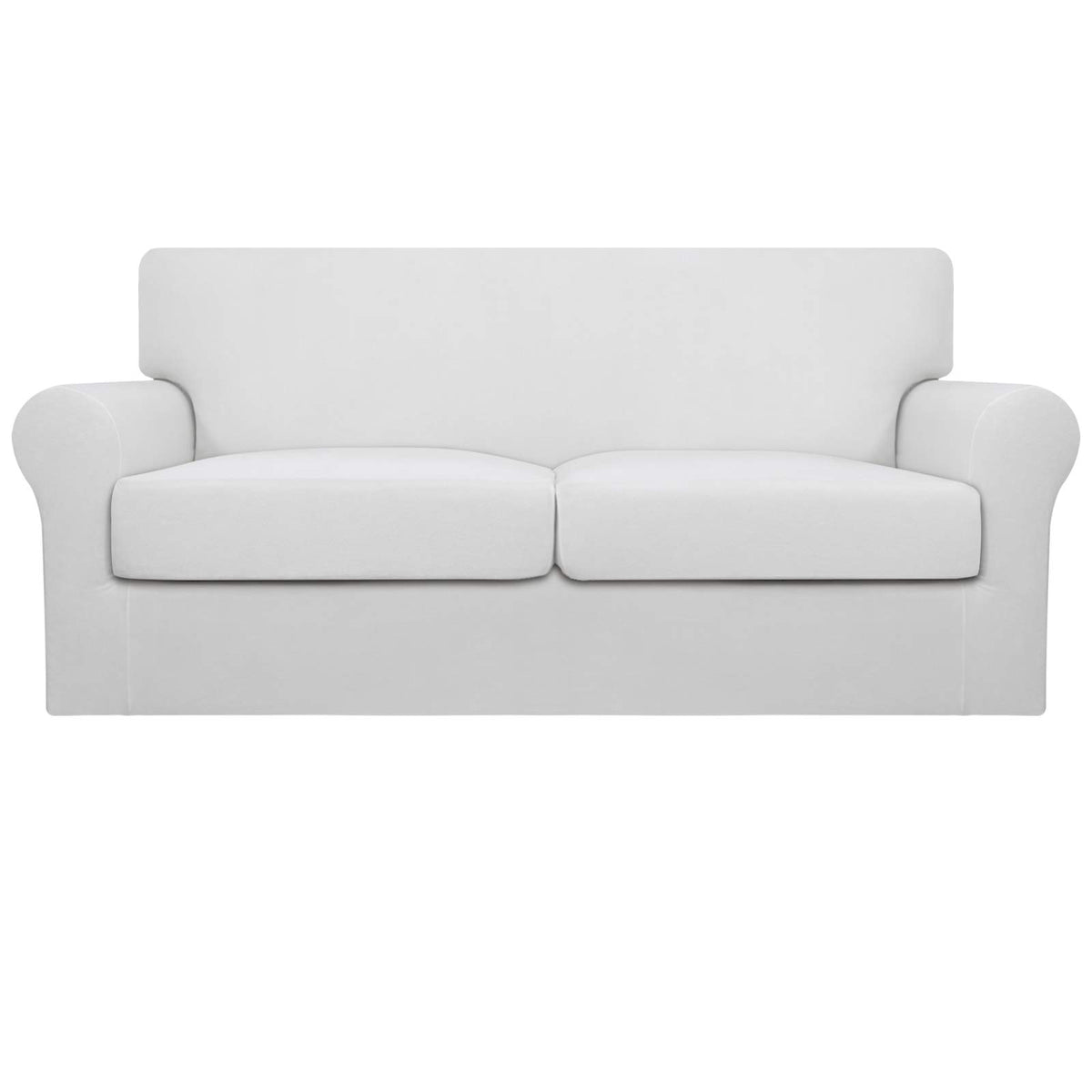 Easy-Going Oversized 3 Pieces Stretch Fleece Soft Loveseat Couch Cover For Pets - Washable Sofa Slipcover For 2 Separate Cushion Couch - Elastic Furniture Protector For Dogs, Kids Snow White