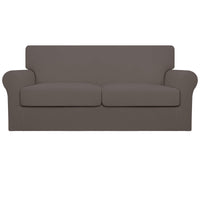 Easy-Going Oversized 3 Pieces Stretch Fleece Soft Loveseat Couch Cover For Pets - Washable Sofa Slipcover For 2 Separate Cushion Couch - Elastic Furniture Protector For Dogs, Kids Taupe