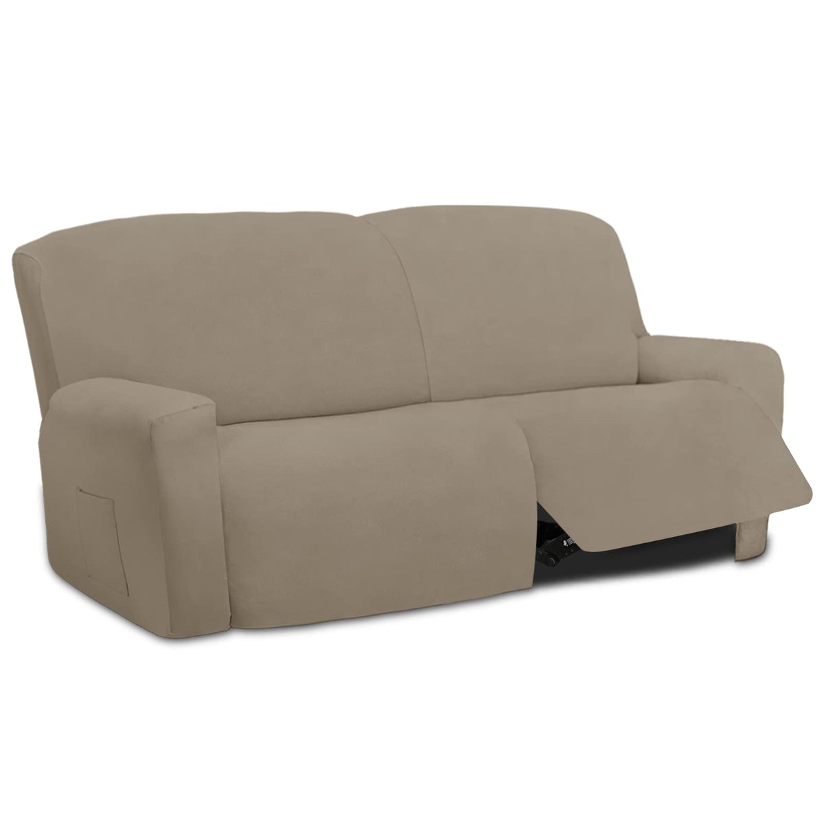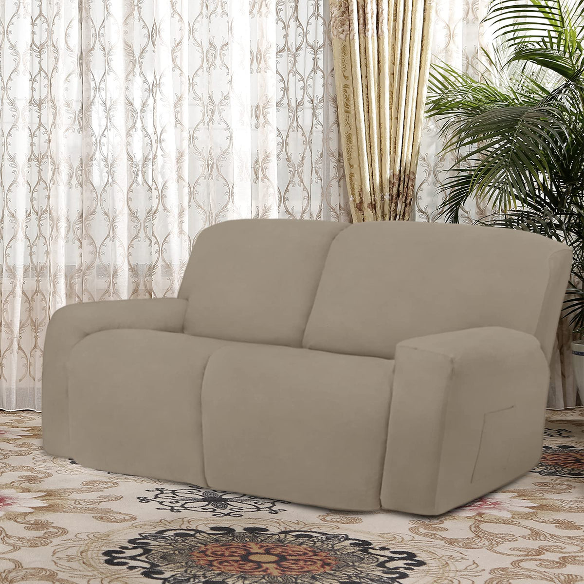 Easy-Going Oversized 6 Pieces Microfiber Stretch Sectional Recliner Loveseat Sofa Slipcover Soft Fitted Fleece 2 Seats Couch Cover Washable Furniture Protector With Elasticity For Kids Pet Natural