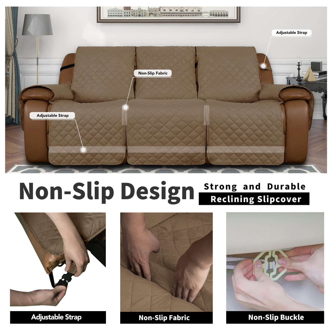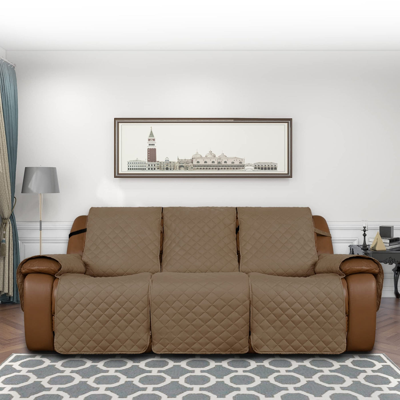 Easy-Going Oversized Recliner Sofa Cover, Reversible Couch Cover For 3 Seat Recliner, Split Sofa Cover For Each Seat With Elastic Straps For Kids, Dogs, Pets (3 Seater, Camel/Camel)