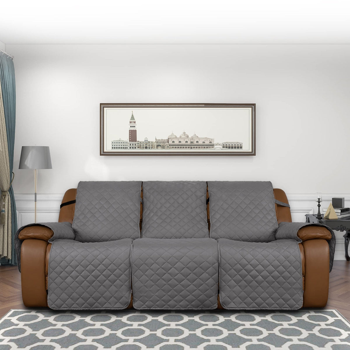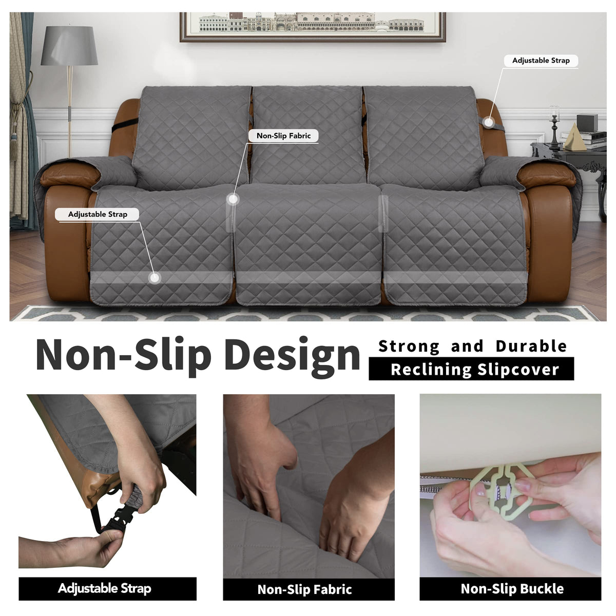 Easy-Going Oversized Recliner Sofa Cover, Reversible Couch Cover For 3 Seat Recliner, Split Sofa Cover For Each Seat With Elastic Straps For Kids, Dogs, Pets (3 Seater, Gray/Gray)