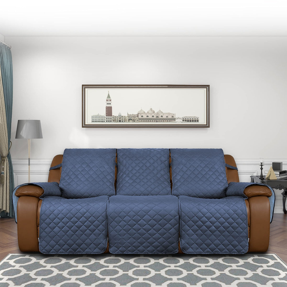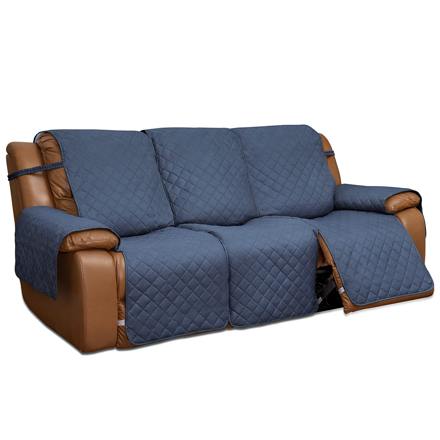 Easy-Going Recliner Sofa Cover, Reversible Couch Cover For 3 Seat Recliner, Split Sofa Cover For Each Seat, Furniture Protector With Elastic Straps For Kids, Dogs, Pet(3 Seater, Dark Blue/Light Blue)