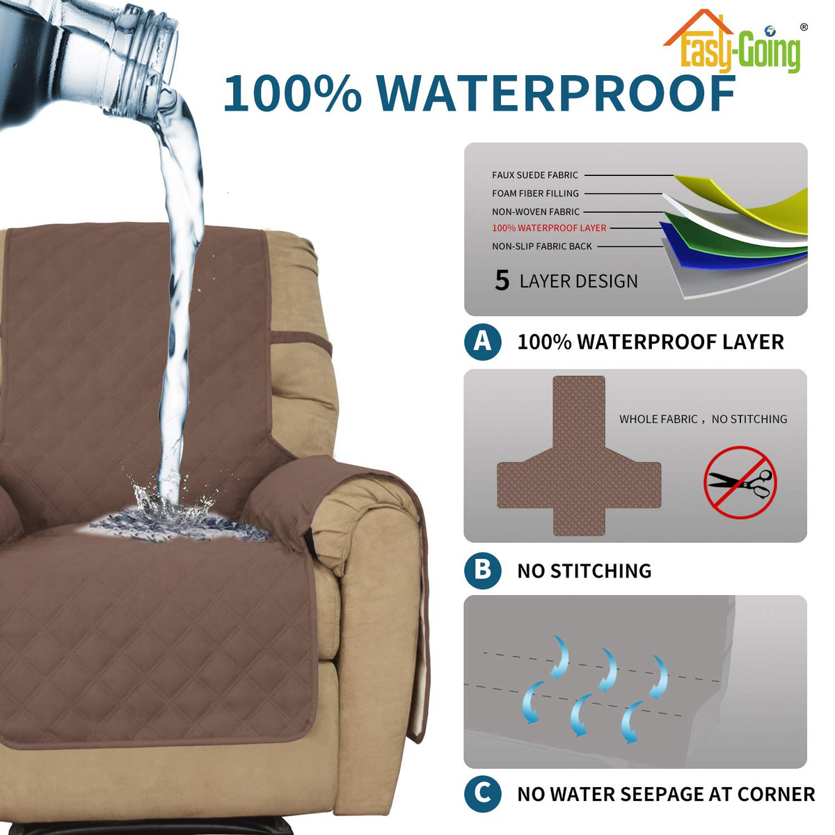 Easy-Going Sofa Slipcover Waterproof Recliner Chair Cover Non-Slip Fabric Couch Cover For Living Room Washable Furniture Protector For Pets Kids Children Dog Cat (Recliner, Brown)