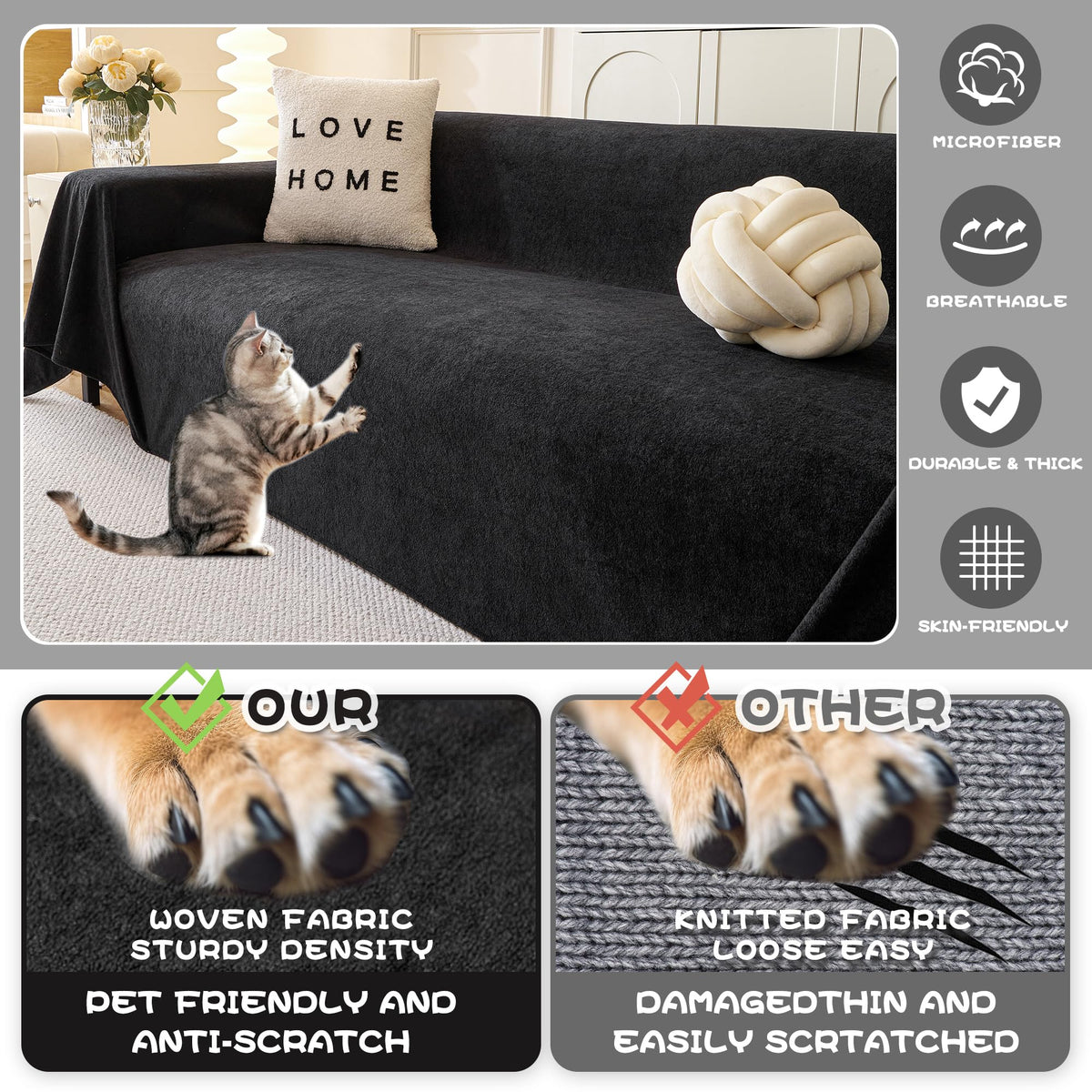 Mysky Home Black Couch Covers For Sectional Sofa, Couch Covers Couch Covers For Dogs Washable Couch Cover Blanket, Non Slip Sofa Slipcovers, Super Soft Sofa Towel For Kids, Pets, 91' X 118'