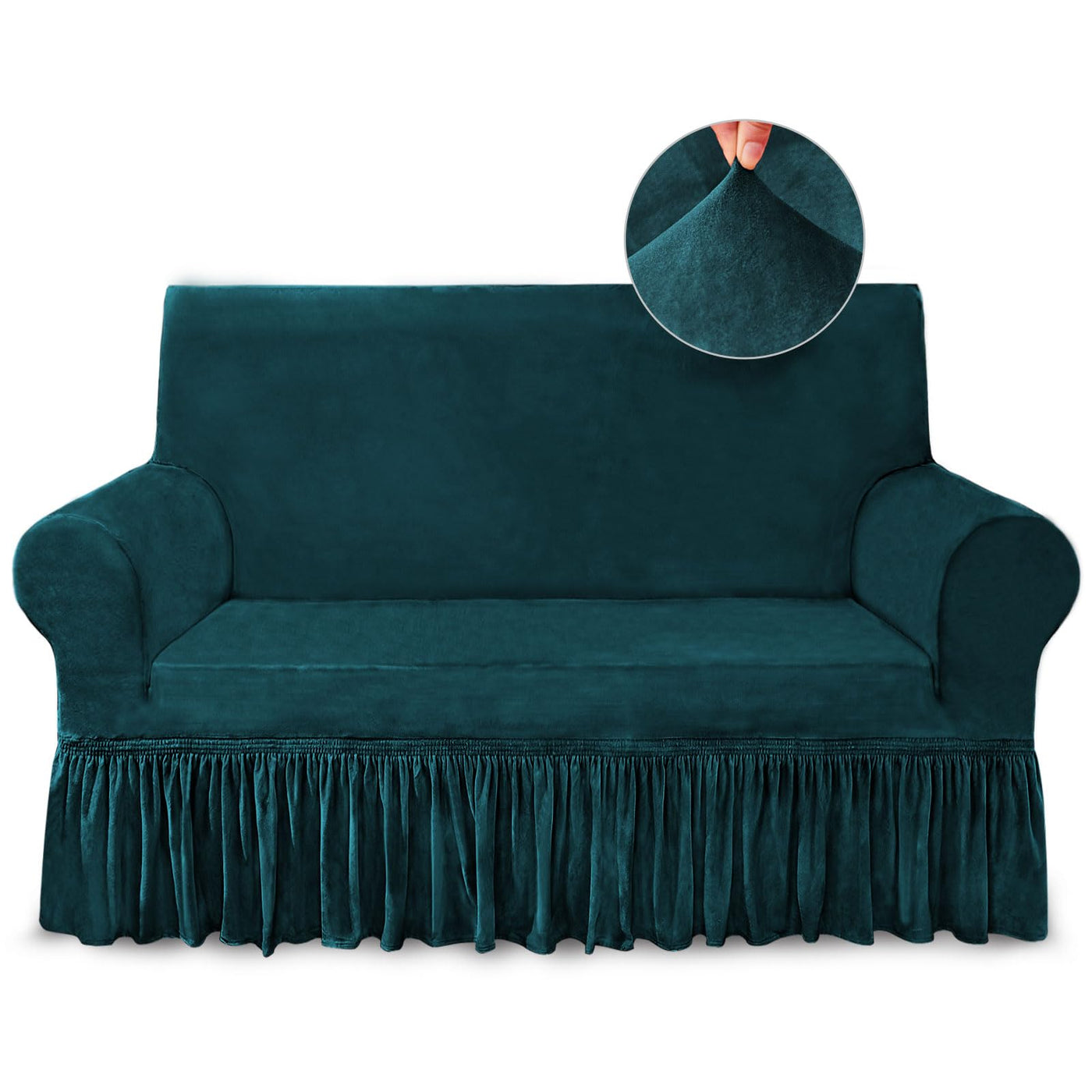 Niceec Loveseat Cover Super Soft 1-Piece Dark Teal Slipcover For Loveseats Stretch Universal Spandex Couch Covers For Living Room Easy Fit Washable Furniture Sofa Protector With Skirt