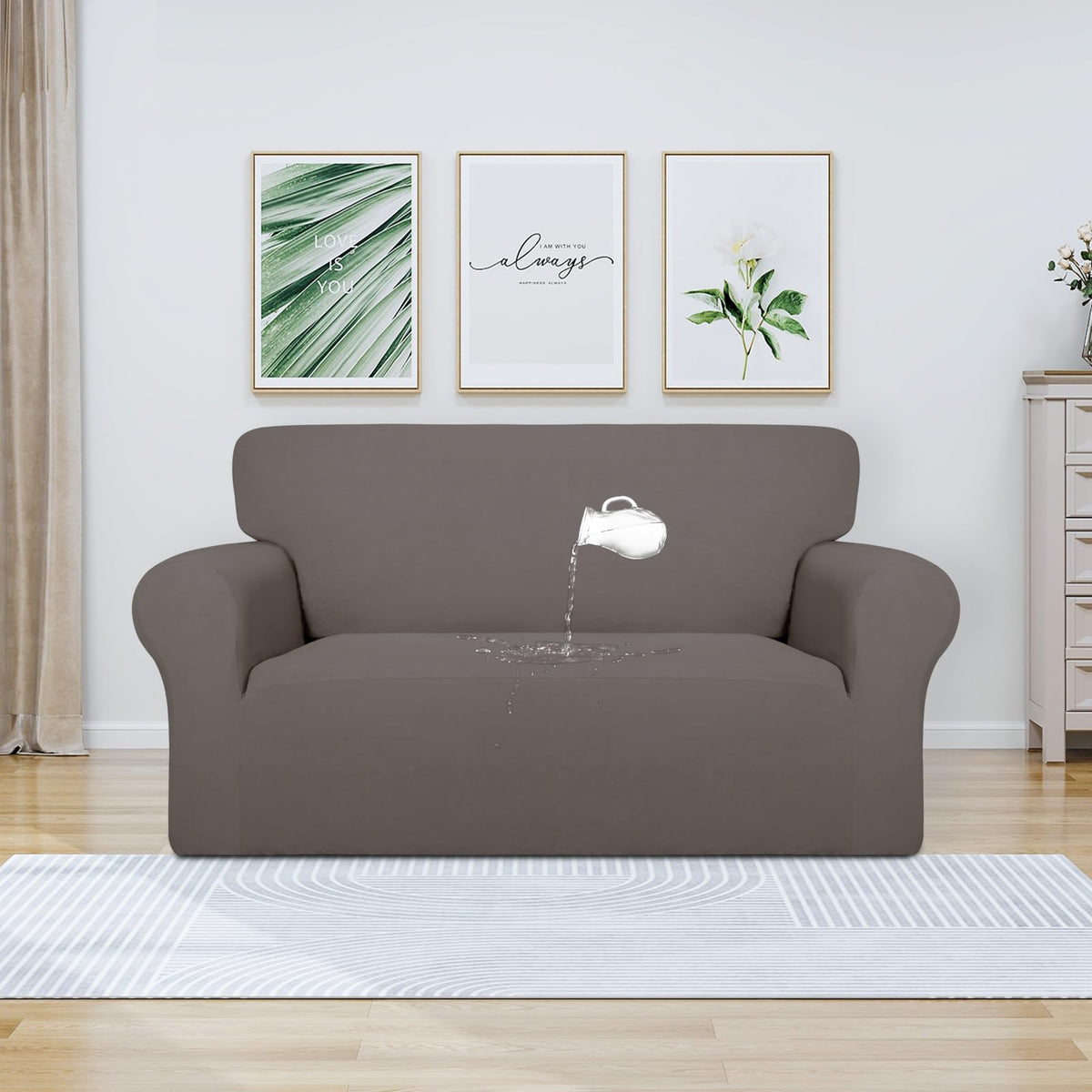 Purefit 100% Dual Waterproof Couch Cover Slipcovers For Couches And Sofas - Stretch Non Slip Fleece Sofa Covers Washable, Leakproof Furniture Protector For Kids, Pets, Dog (Loveseat, Taupe)