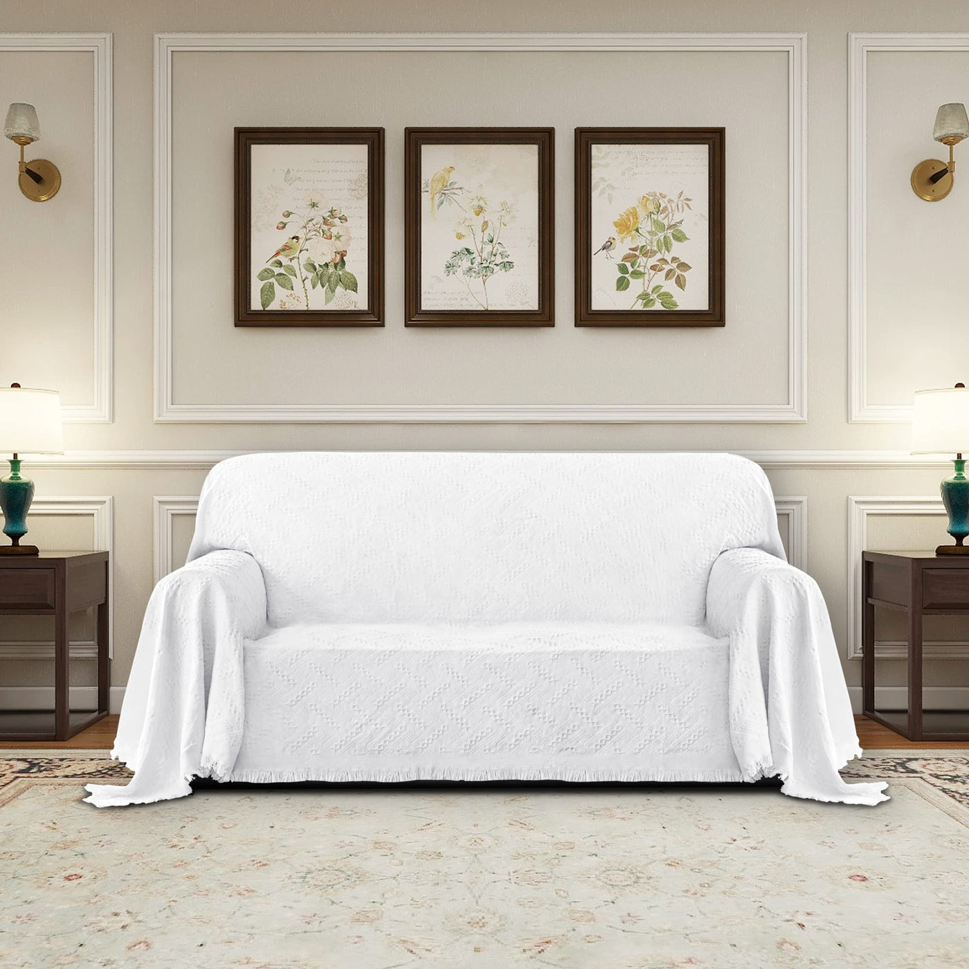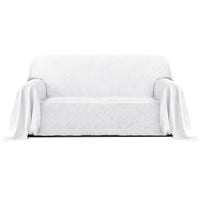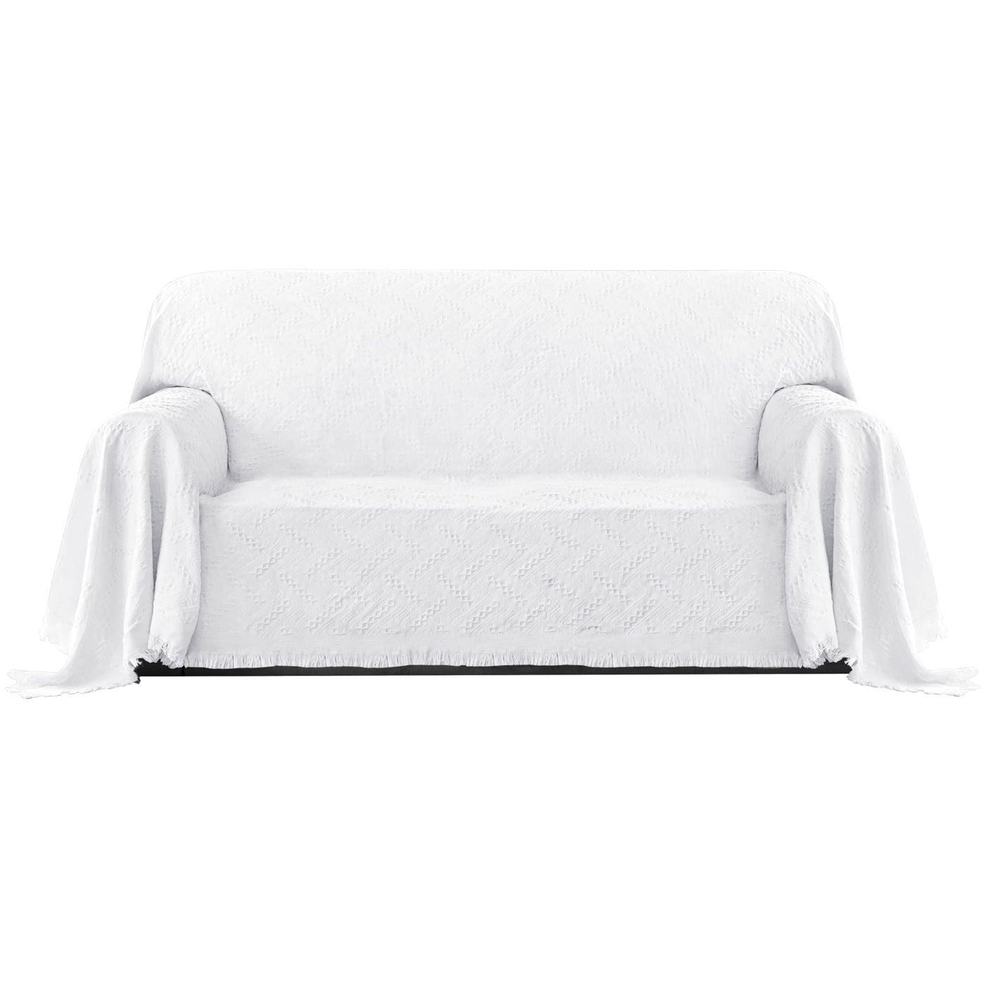 Purefit Geometric Jacquard Throw Sofa Cover - Textured Soft Washable Decorative Couch Covers For 3 Cushion Couch, Throw Cover With Tassels Furniture Protector For Pets, Kids (Medium, White)